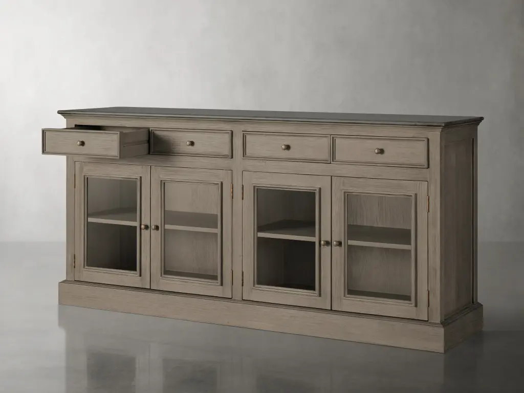 Every plank in our classic Kensington Collection tells a story of expert craftsmanship. Artisans build each buffet by hand from solid, sustainably sourced Finnish pine wood complemented by your choice of smooth, stunning stone top. Distinctive finishes are layered with stain and distressed detailing to accentuate the wood’s naturally unique features, resulting in a timeless antiqued aesthetic.