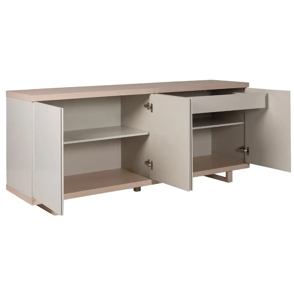 The Layla Buffet represents a remarkable blend of Brazilian craftsmanship and contemporary design. Impeccably constructed, this buffet embodies modern sophistication and outstanding artistry. Boasting four doors, a drawer, and two shelves, it provides ample storage and organization possibilities. The flawless finish and seamless integration of materials showcase meticulous attention to detail. Created to harmonize with diverse interior styles, the Layla Buffet introduces refined elegance to any space. Indulge in the beauty and craftsmanship of this extraordinary buffet, bringing functional elegance to your home.
