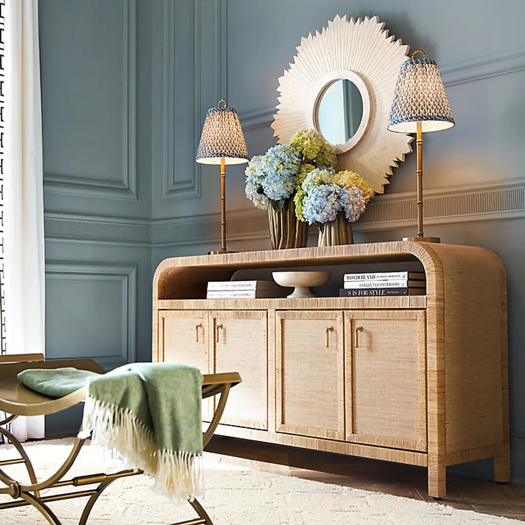 Our stylishly versatile Leighton Pleated Buffet Lamp Shade changes mood with the color you select. For tailored sophistication, Cornflower would be our go-to choice. Marine creates a Scandi-inspired vibe. And for a light, livable look, opt for neutral, relaxing Stone. The leaf pattern is crisply printed on soft cotton blend. Leighton Pleated Buffet Lamp Shade features: