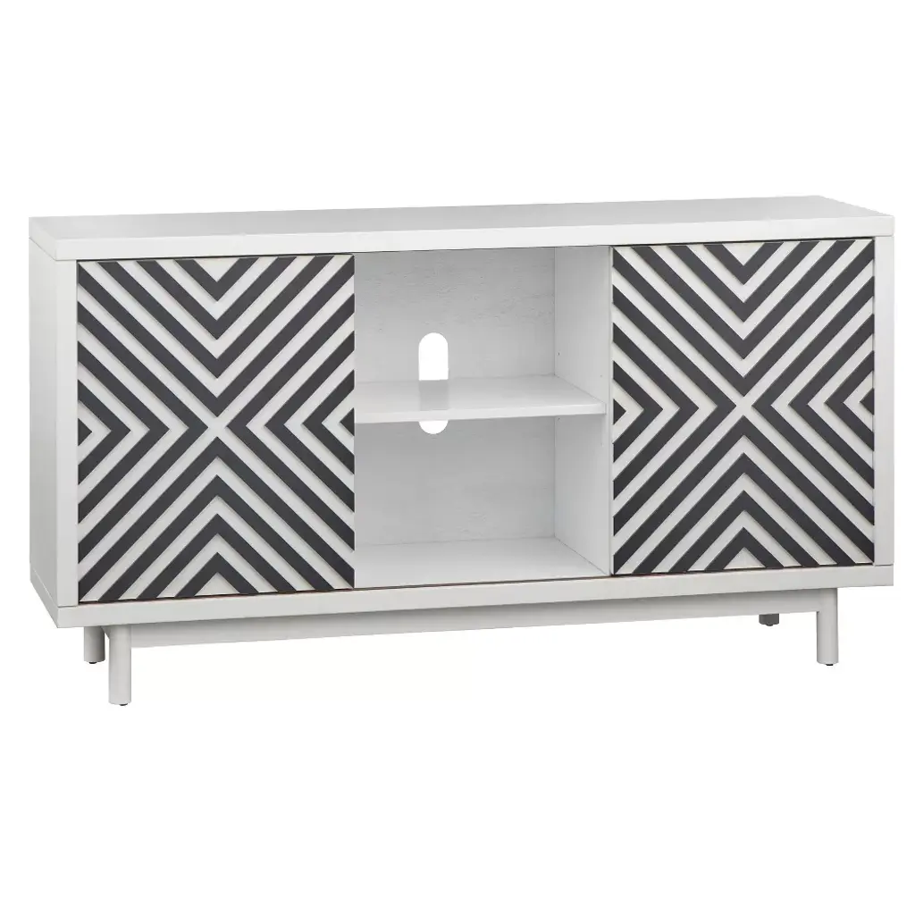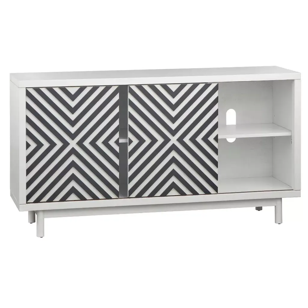 Instantly transform your dining space with the distinct design of the Mason Buffet by Lifestorey. Mid-century inspired with urban elements, the Mason cabinet offers ample storage for your dishware, linens, serving pieces, and more. Fashioned with cone style legs in a white finish, the sliding panel doors with a stunning dark gray pattern adds the perfect focal point to any dining room space.
