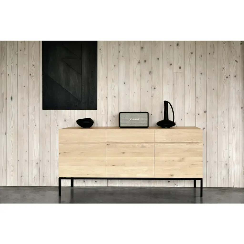 A clean and pure look with stainless steel legs, the Ligna sideboard offers a perfect storage facility for the kitchen, living room, or dining room.