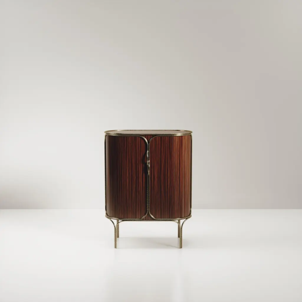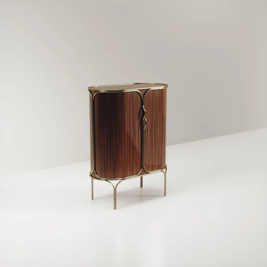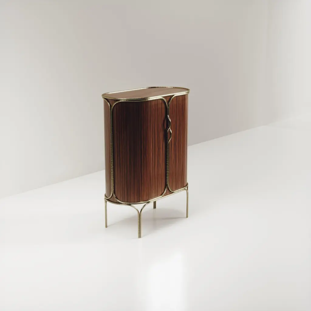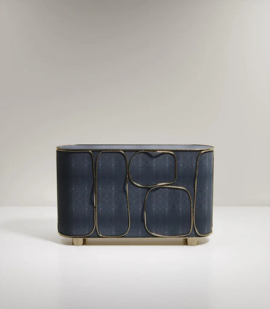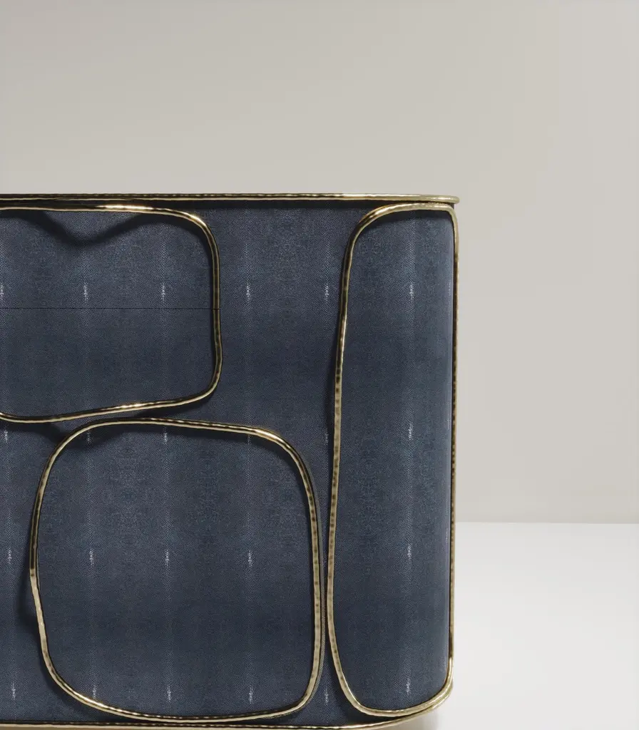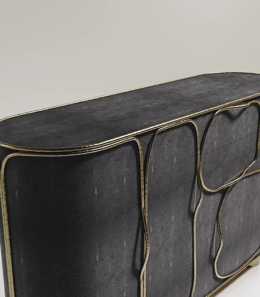 The Arianne buffet by R&Y Augousti is one of a kind statement piece. The overall piece is inlaid in Macassar wood accentuated with intricate bronze-patina brass details that have the signature Augousti "melting" effect. The interior of the piece is in crown-ash wood veneer and opens with various compartments & drawers like a "cabinet of curiosities". This piece is part of the Arianne Capsule, see images at end of slide of the collection. Available in other finishes, see images at end of slide. Custom sizing / finishing available in requestMeasures: 183 x 53 x 110.75 cm All R & Y Augousti pieces are handmade by artisans, ultimately making each piece unique. Custom color/sizing available on request. Wipe clean with soft dry cloth.Acclaimed design duo Ria & Yiouri Augousti have established themselves since the 1990s as pioneers of modern-vintage style through their luxurious Art Deco inspired collections.The Paris based label has distinguished themselves since their launch, with their iconic use of shagreen mixed with brass and other exotic materials. All furniture is handcrafted by skilled artisans, ultimately making each piece unique. All shagreen-covered items should be kept out of direct sunlight, color variants may occur on the stingray and other exotic finishes, but this showcases the Parisian label's commitment to creating authentic luxurious products using natural components.