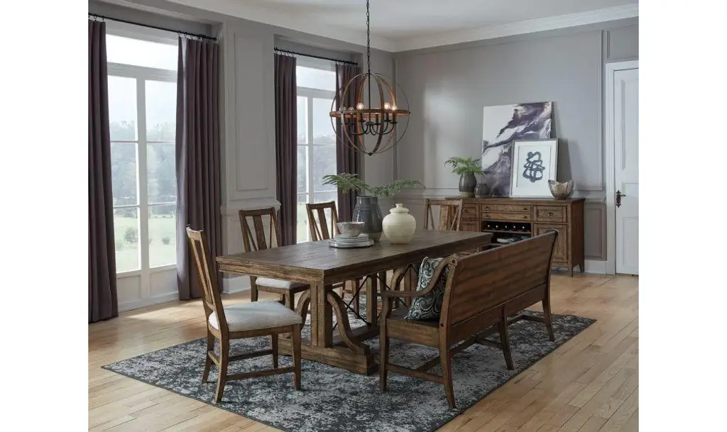 Give your dining room a quick refresh with the ageless style of the Bay Creek collection. Perfect for casual dinners or fine dining, it is timeless character ensures every meal is a success. Crafted with impeccable attention to detail, Bay Creek features a warm brown accented with Aged Bronze hardware. This classic collection offers raised beaded trim, framed panel elements and straight, shaker inspired legs.