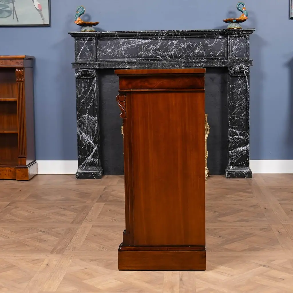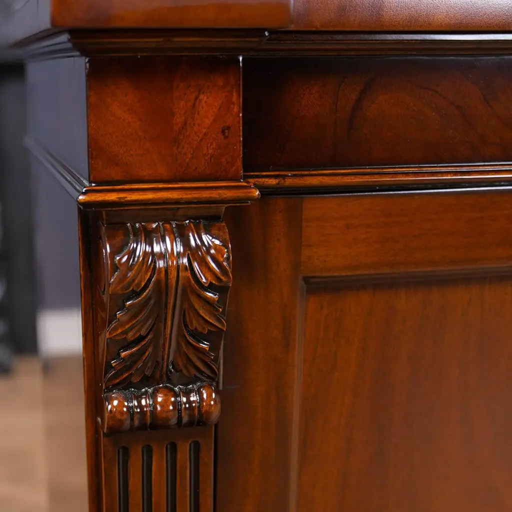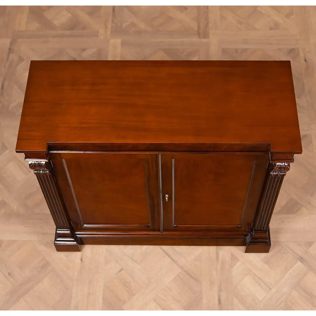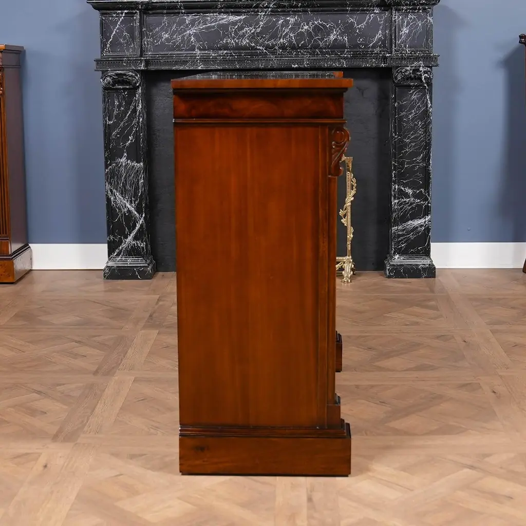 The Mahogany Server matches other items in our Penhurst collection. An ideal size our Mahogany Server can fit into tight spaces while still providing a lot of storage space. The two doors conceal a storage area with a shelf to help store anything from reams of paper in the office to antique china in the dining room. Great quality construction and pretty mahogany veneers and solids combine to give a stately appearance.Measures 39.5″w x 16″d x 36″h