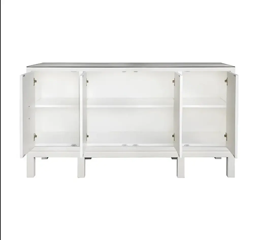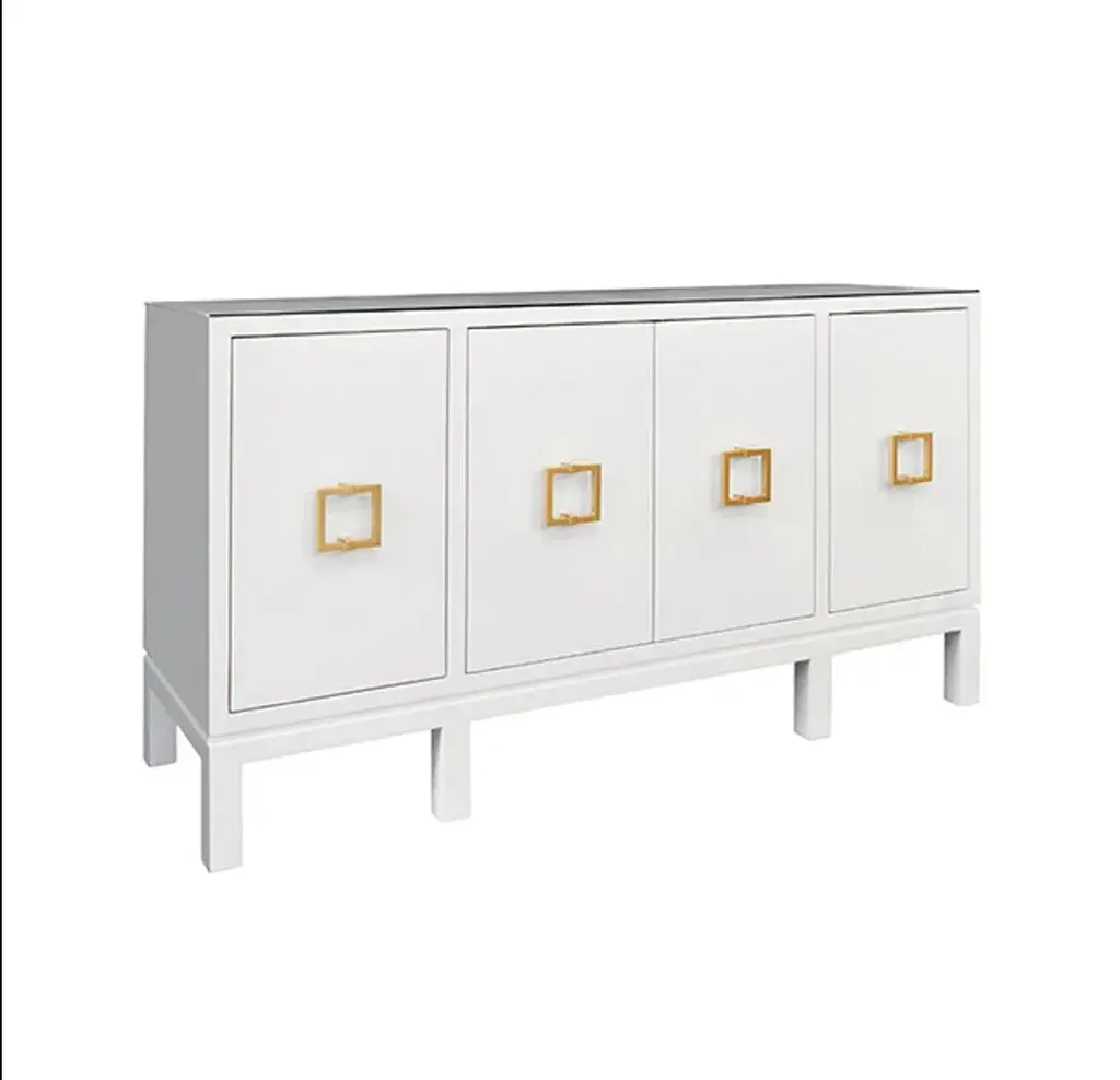 Matthew Izzo Home - Effie White Dyed Grass Cloth, Four Door Buffet With Brass Hardware