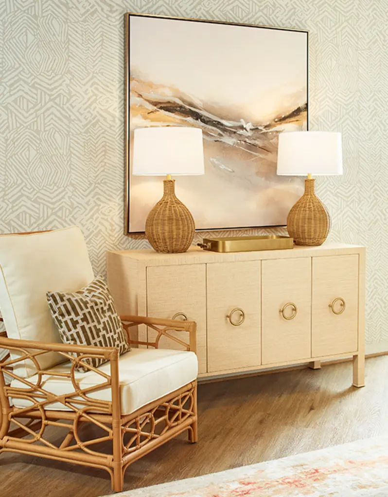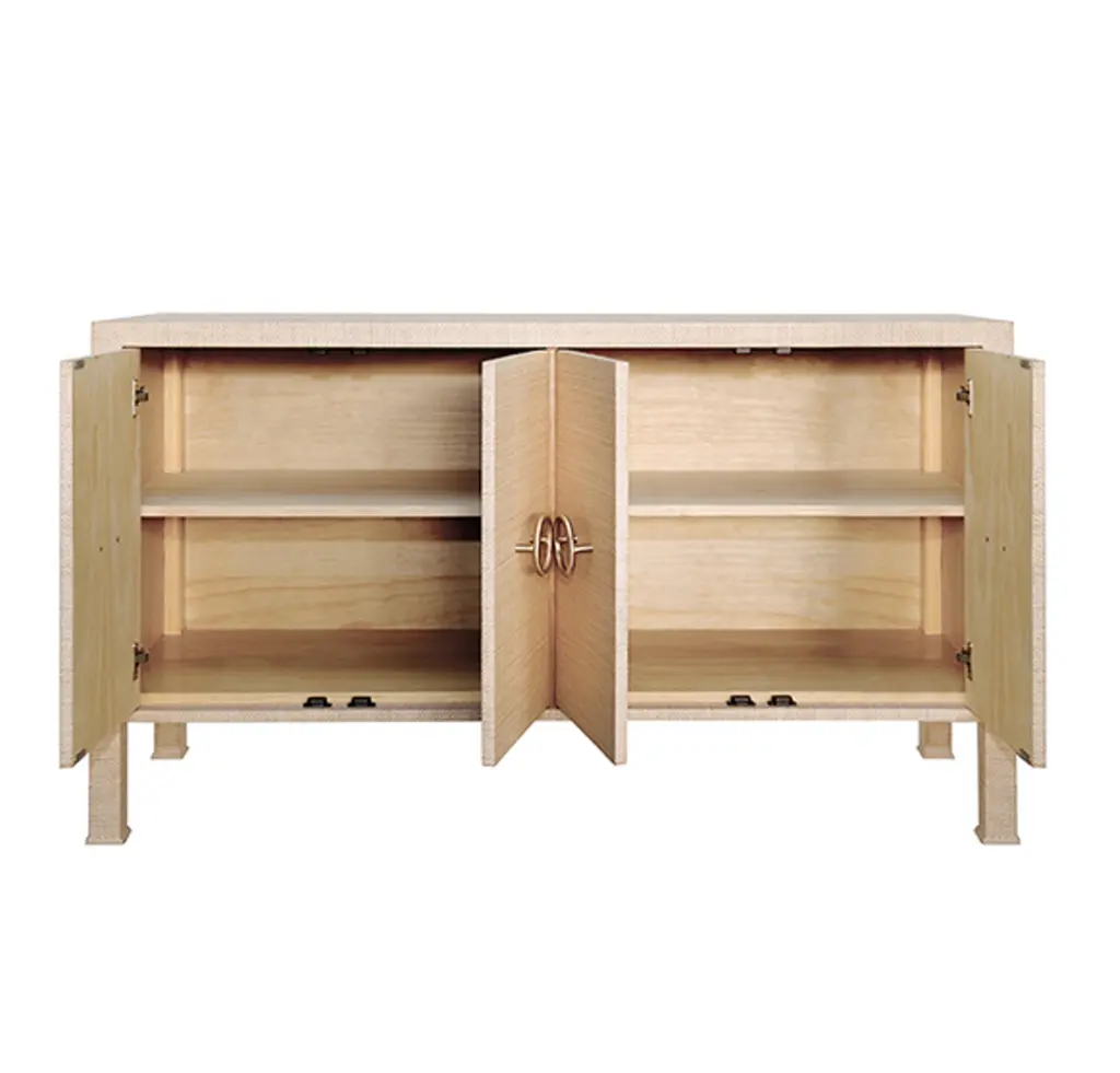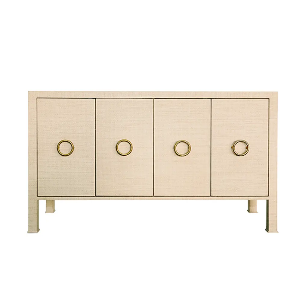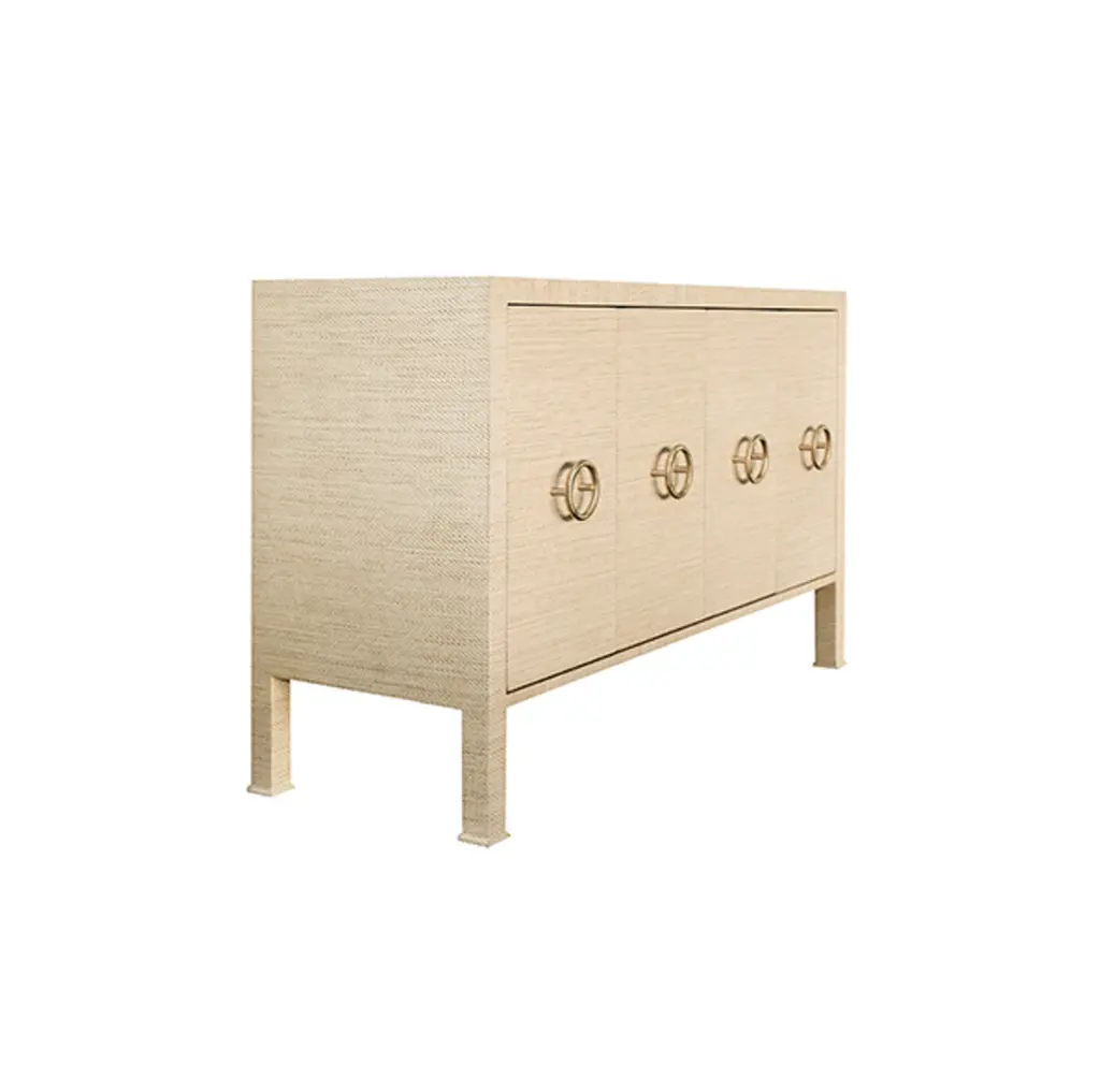 Matthew Izzo Home - Rue Natural Grasscloth Four Door Buffet With Antique Brass Hardware