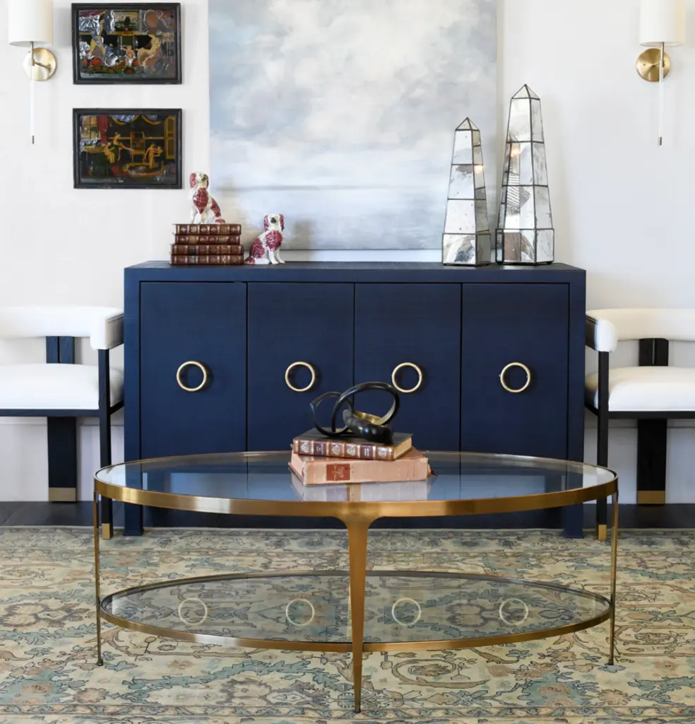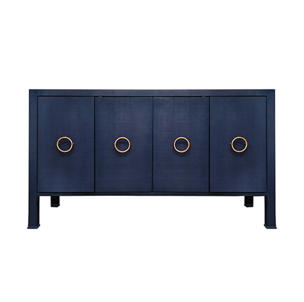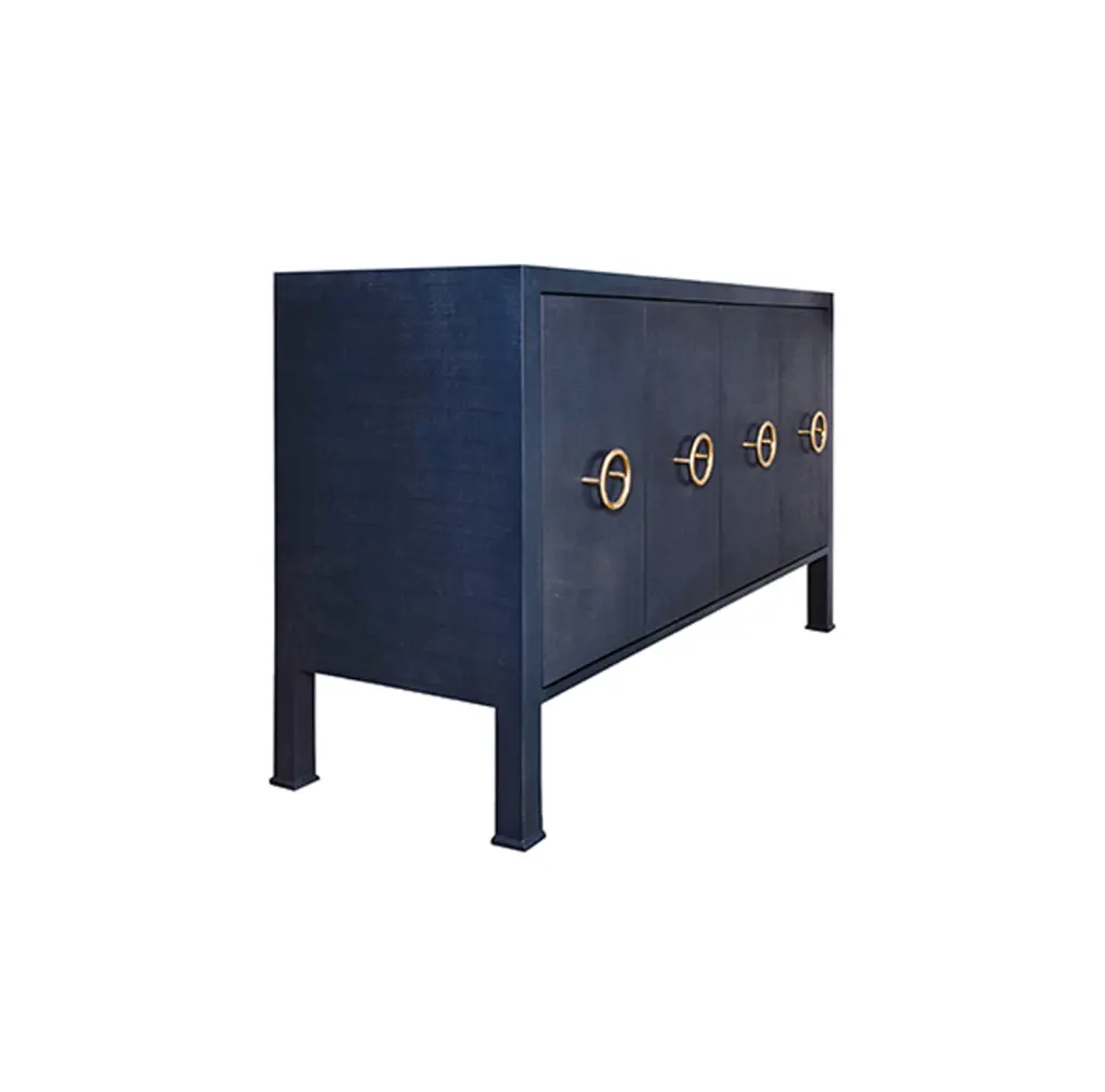 Matthew Izzo Home - Rue Navy Textured Linen Four Door Buffet With Brass Circle Hardware