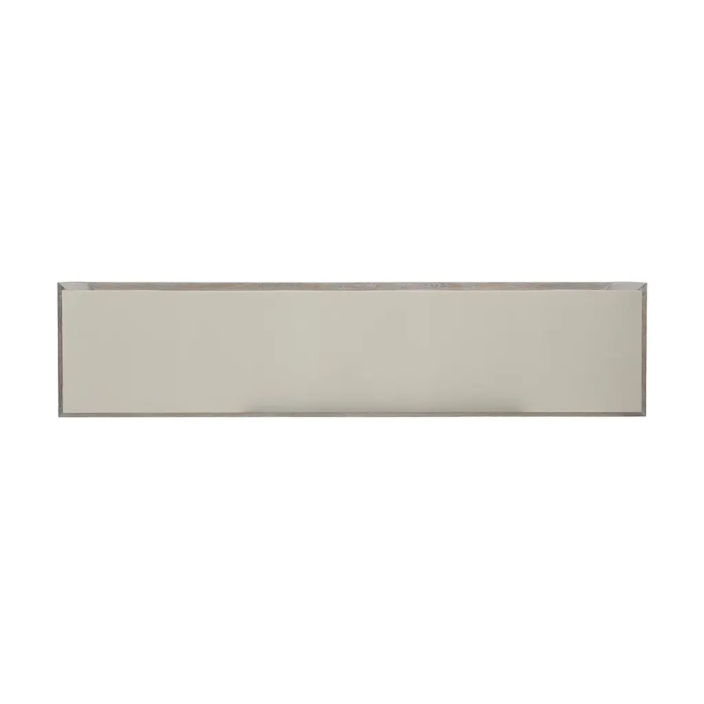 Modern Ash Buffet, a straightforward silhouette showcases its extraordinary linear veneer patterns and is topped with a cream stone top that ensures usability and durability. Block feet and a soft tonal finish of Ash Driftwood convey its relaxed attitude while a bead of Sundance Gold gives the top edge a touch of luxe. Touch-latch doors open to reveal a fully finished interior painted in Putty with plenty of storage and an adjustable shelf and drawer behind each of its four doors. Dimensions: 80" W x 18" D x 32" H