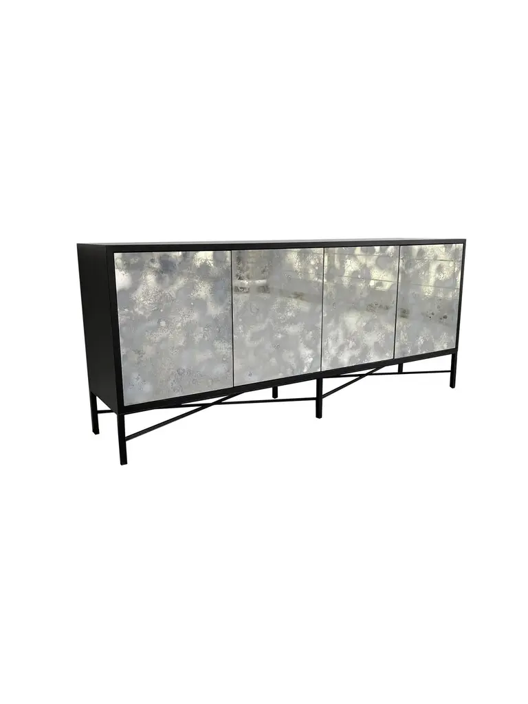 Modern Industrial 4-Door Media Buffet With Black Steel By Ercole Home