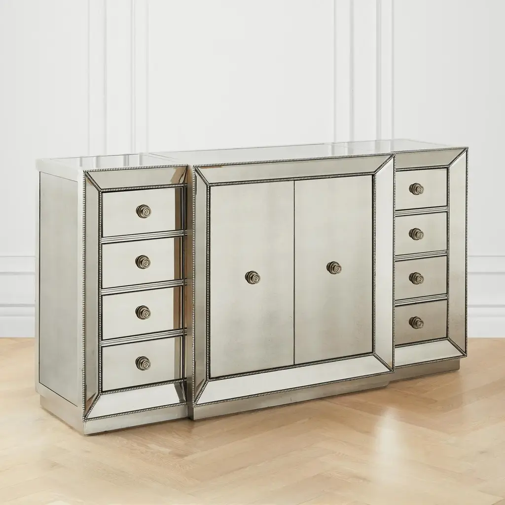 Bring glamour to any room with our Omni Mirrored Collection. It's streamlined silhouette is fitted with antique beveled mirrored panels and trimmed with silver beaded details.Click here to learn more about the Omni Collection - Omni Care Card