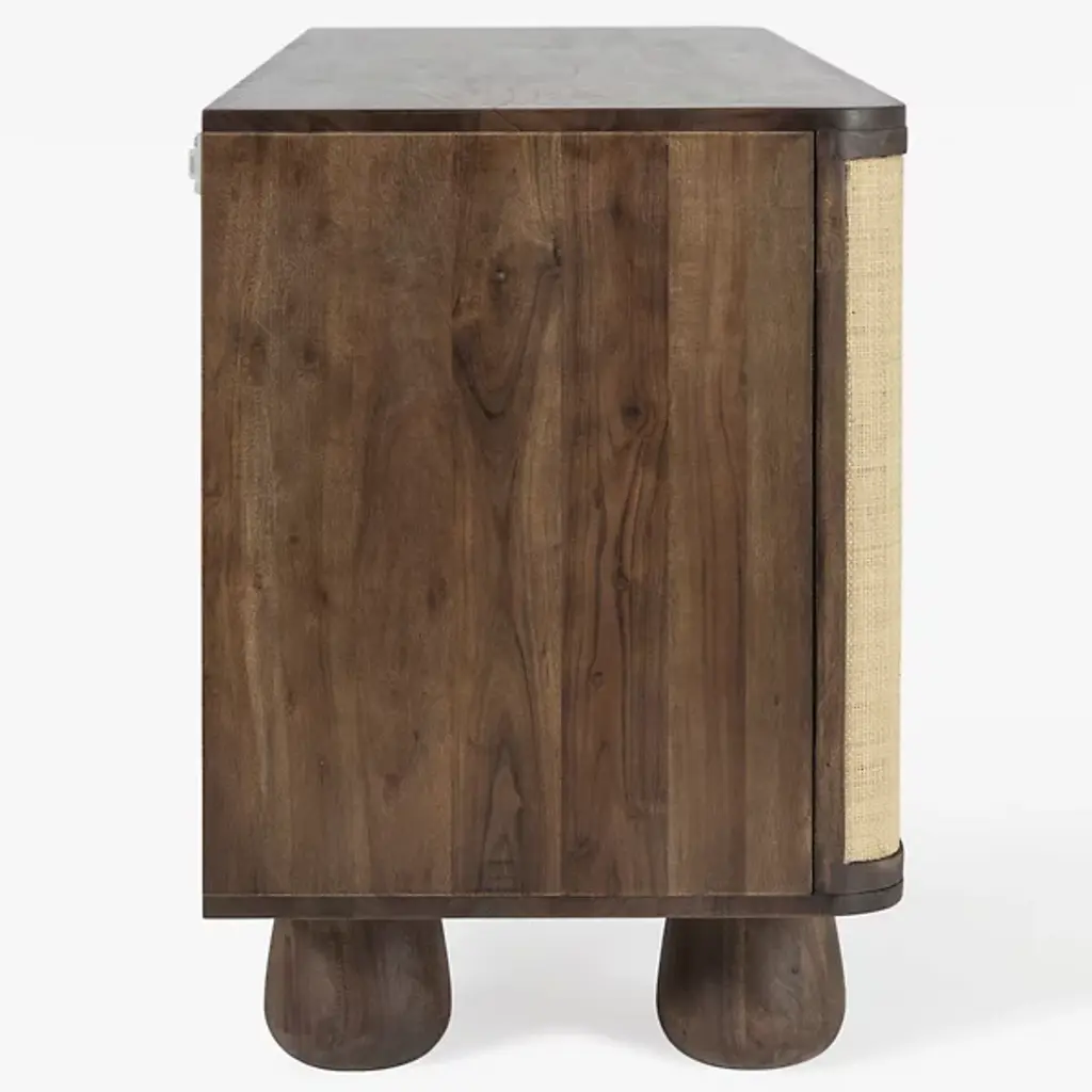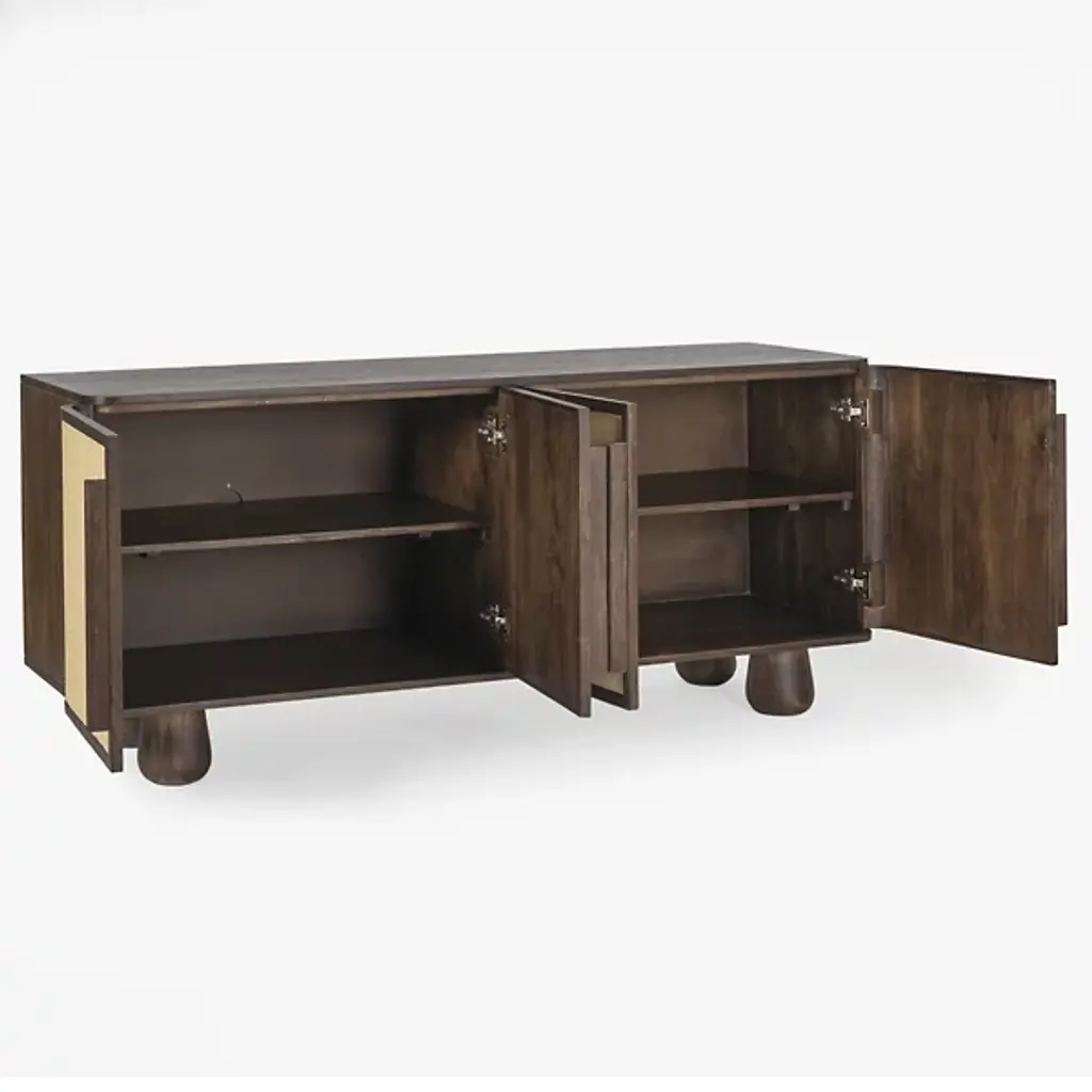 The Retlin Buffet from Alder & Ore is a backdrop for memories, holding everything from heirloom china to everyday dishes with equal grace. Its acacia wood frame provides a sturdy foundation, while the grasscloth finish adds an unexpected texture. This juxtaposition of smooth wood and nubby fabric creates a multi-sensory experience every time you interact with the piece. Behind its soft-close doors, adjustable shelves await your organizational whims.