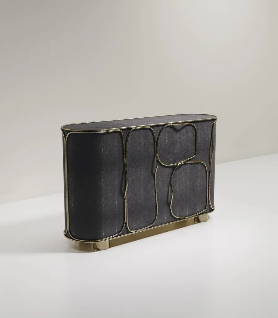 Shagreen Buffet With Chrome Finish Stainless Steel Details By R&y Augousti