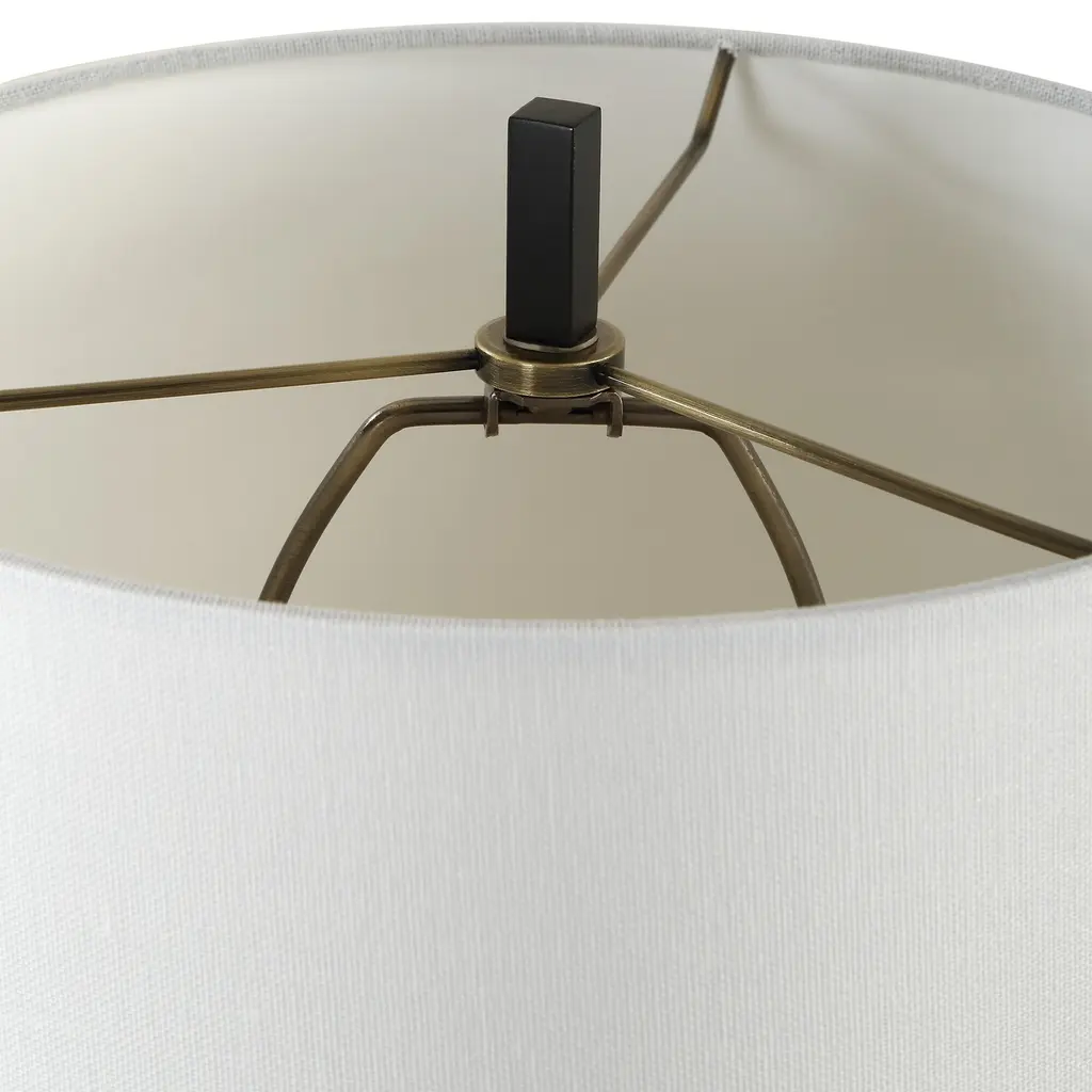 This updated traditional buffet lamp features a satin black finish with a luxurious velvet-like texture that exudes sophistication and contemporary elegance. Displayed on a sleek black marble foot and accented with plated antique brass details, it combines classic charm with modern style. The round hardback drum shade is covered in crisp white linen fabric, completing the look and adding a touch of refinement to any space. Product Features: Black traditional buffet lamp Displayed on sleek black marble foot Accented with plated antique brass details Includes a hardback drum shade Recommended for indoor use only Additional Features: Wattage: 150W Bulb type: type A Socket type: 3-way Dimensions: Overall height: 38" high x 11" diameter Shade dimensions: 11" high x 11" diameter Material(s): marble/iron/resin/fabric