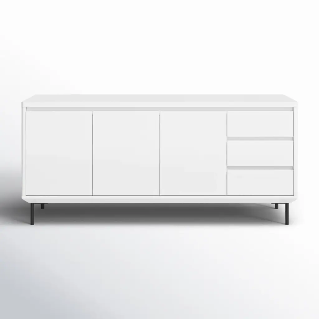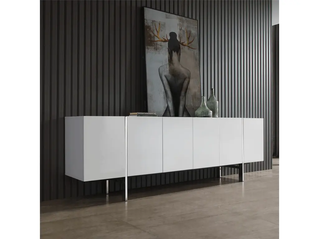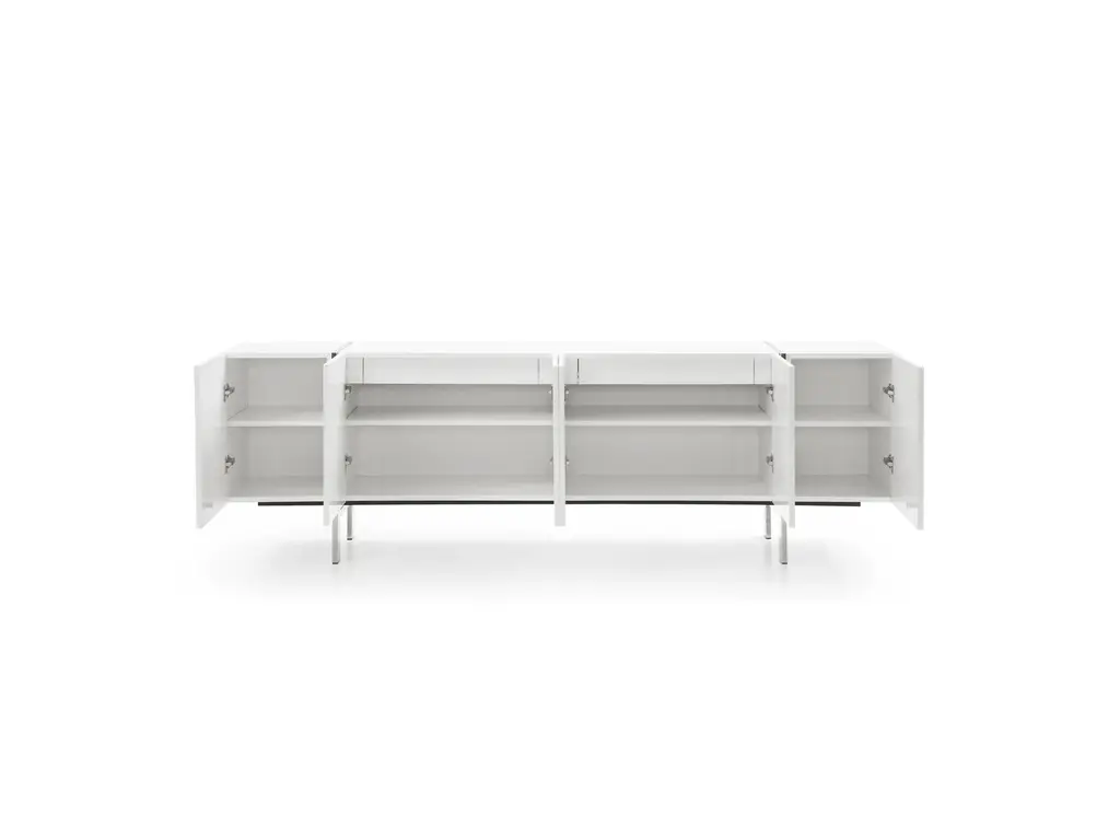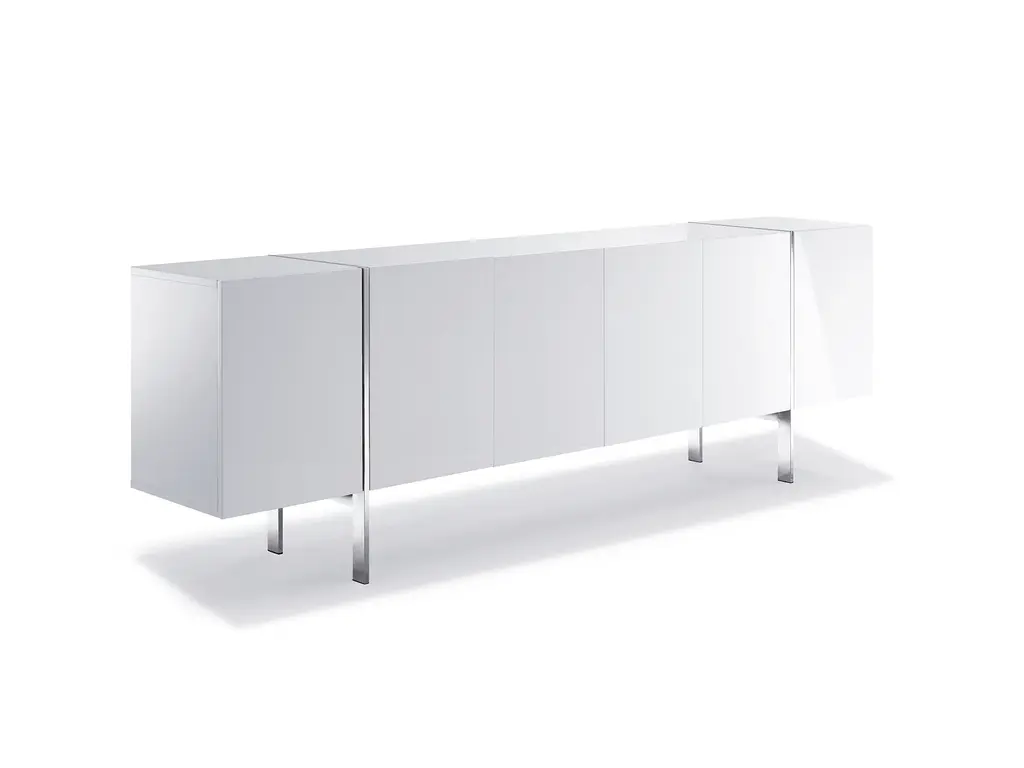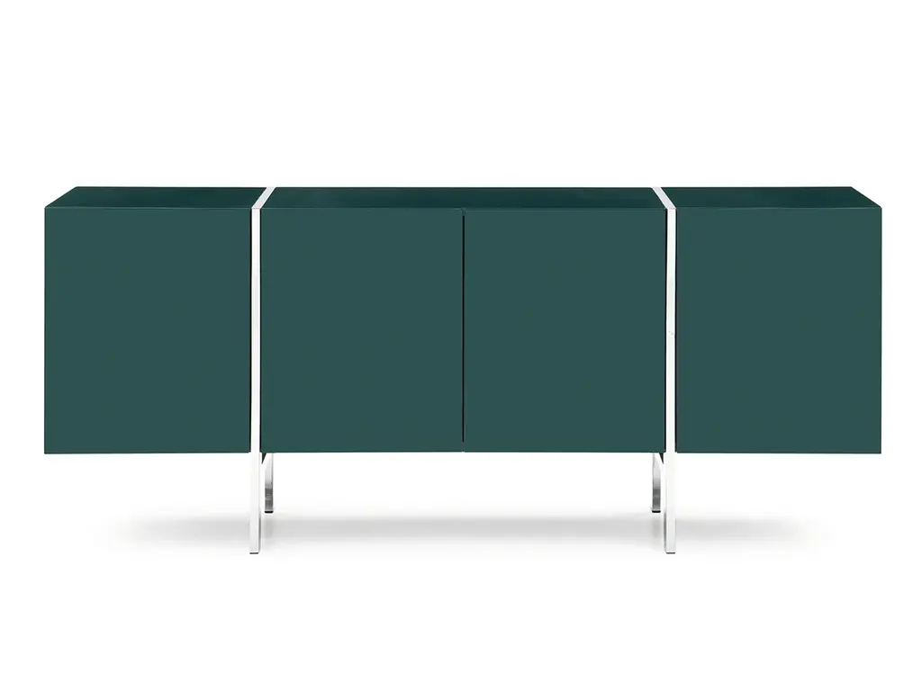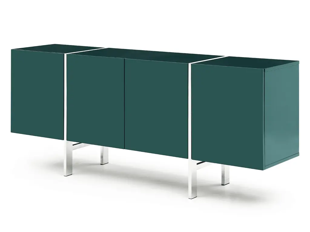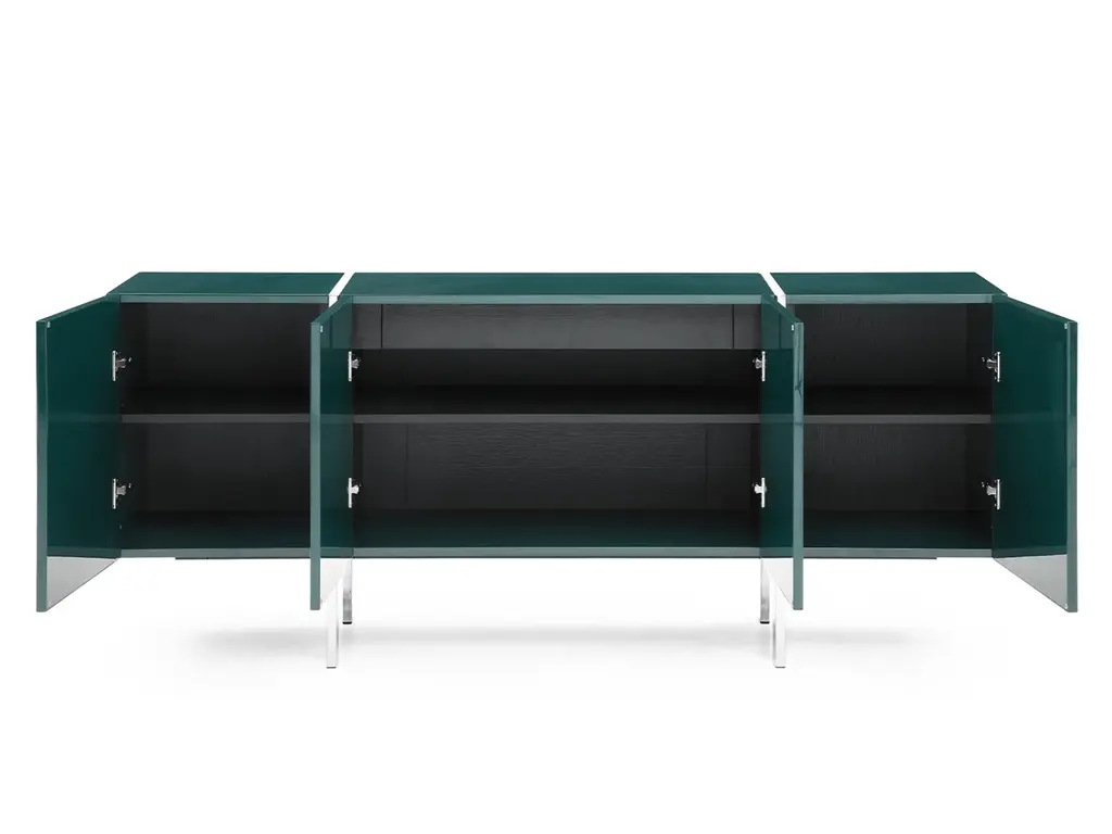 Comes in high gloss white/ high gloss Dark Green with adjustable shelves and polished stainless steel legs.