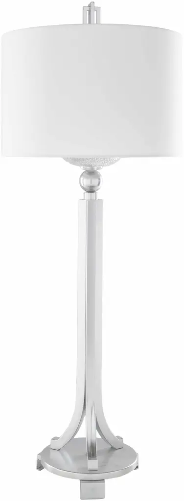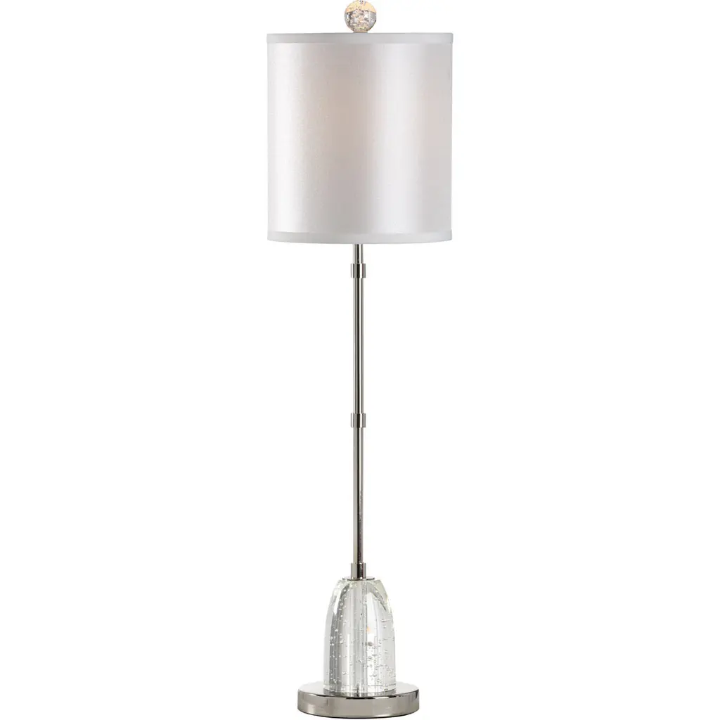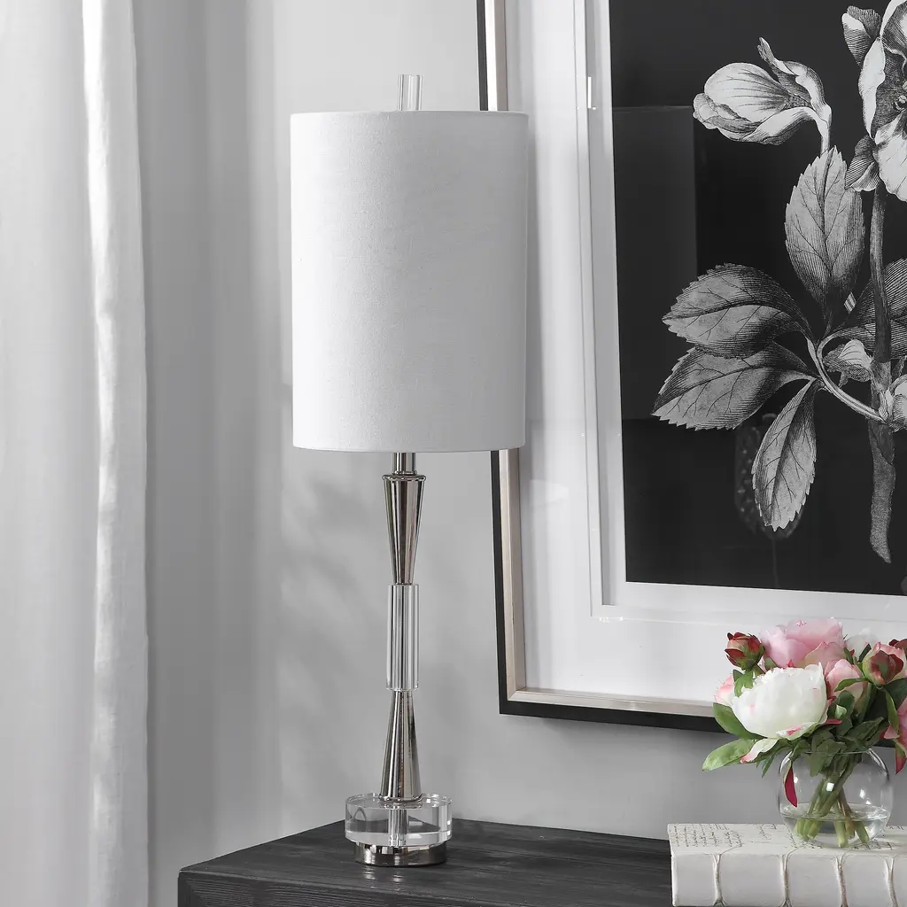 Stylecraft Glass Buffet Lamp - Clear Glass & Static Silver Finish - White Shade - Clear, Static Silver