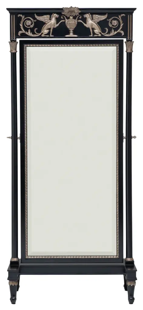 Vintage Tell City Furniture Company cabinet and mirror of solid maple adorned with an impressive brass American Eagle to the pinnacle. Limited production from The Young Republic Collection, the cabinet features a single drawer and stationary shelf behind two doors for storage, accented with acorn & Americana style stenciling throughout. An heirloom quality piece of marvelous multifunction options for a variety of uses & settings.