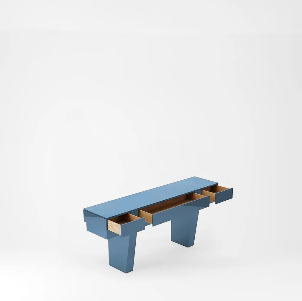 The Terrace Server embodies simplicity, drawing inspiration from the layers reminiscent of a classic terrace. Concealing its drawers discreetly, this piece showcases a hand-polished gloss lacquer exterior complemented by an oak veneer interior.