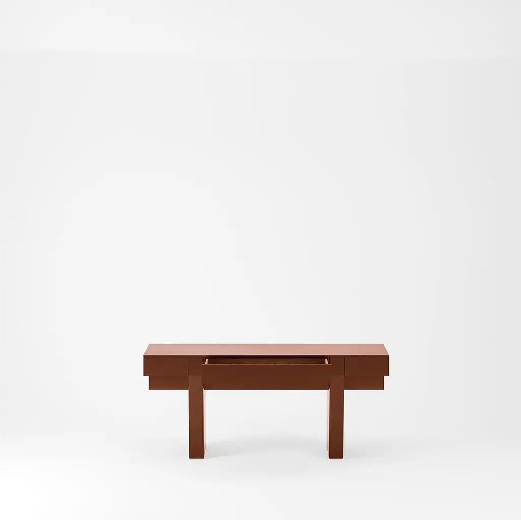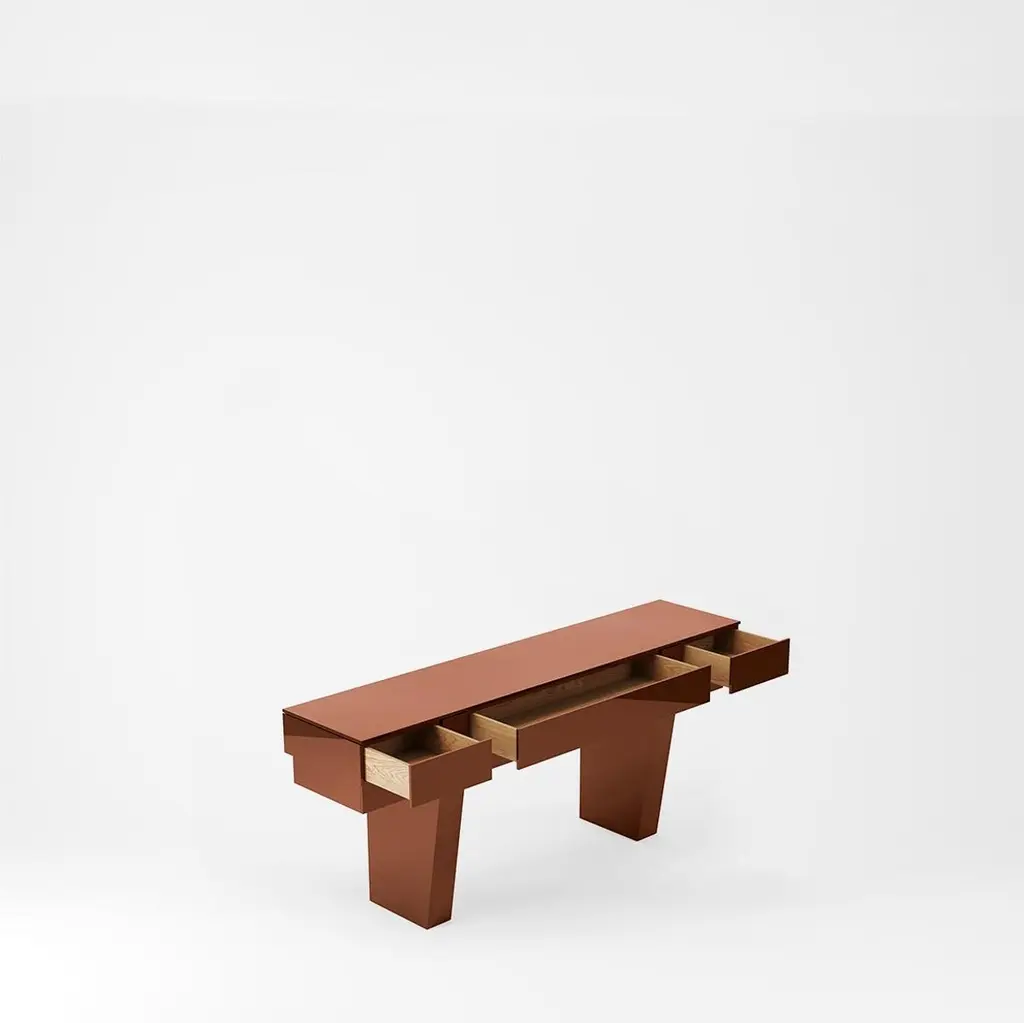 The Terrace Server embodies simplicity, drawing inspiration from the layers reminiscent of a classic terrace. Concealing its drawers discreetly, this piece showcases a hand-polished gloss lacquer exterior complemented by an oak veneer interior.