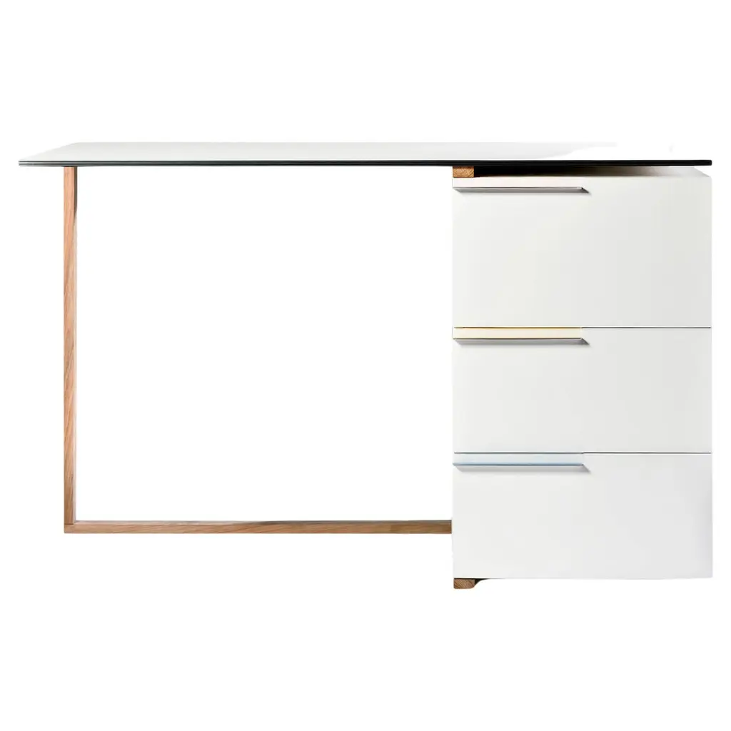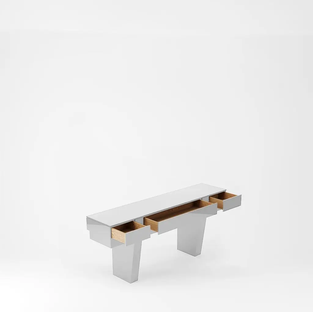 The Terrace Server embodies simplicity, drawing inspiration from the layers reminiscent of a classic terrace. Concealing its drawers discreetly, this piece showcases a hand-polished gloss lacquer exterior complemented by an oak veneer interior.