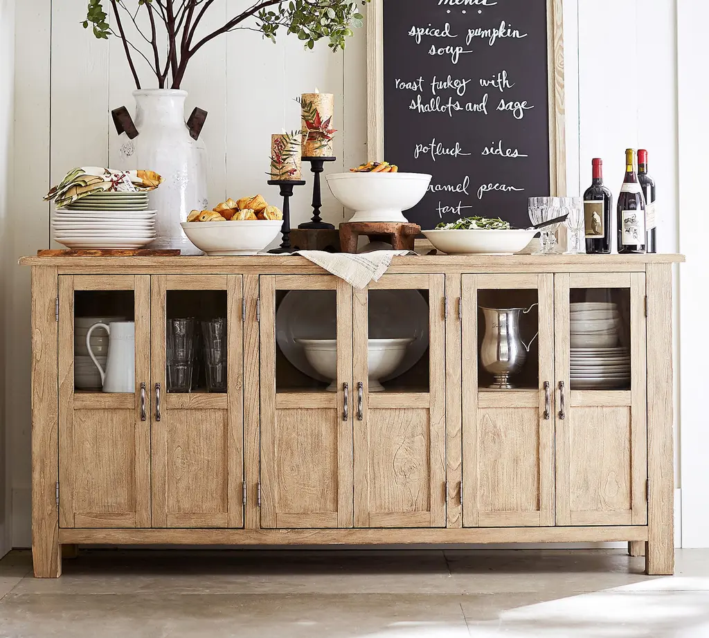 With room to store your dinnerware, table linens and glassware, this buffet is ideal for entertaining. An adjustable shelf behind each door lets you accommodate a variety of serving pieces and other essentials.