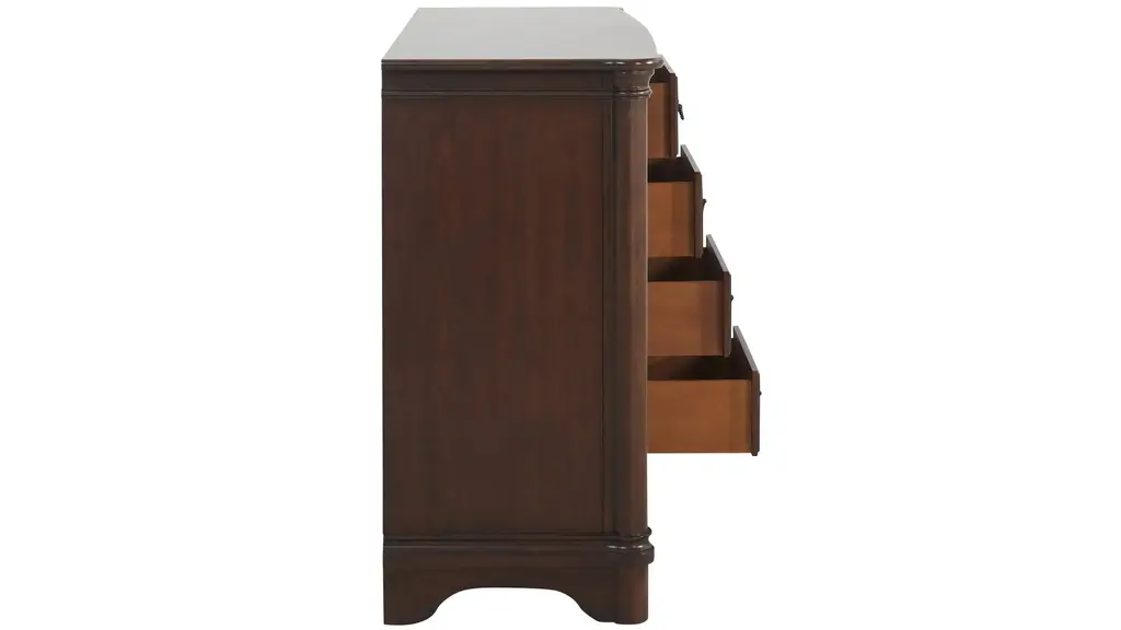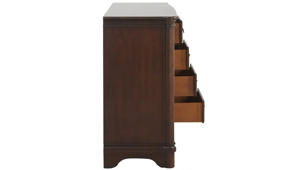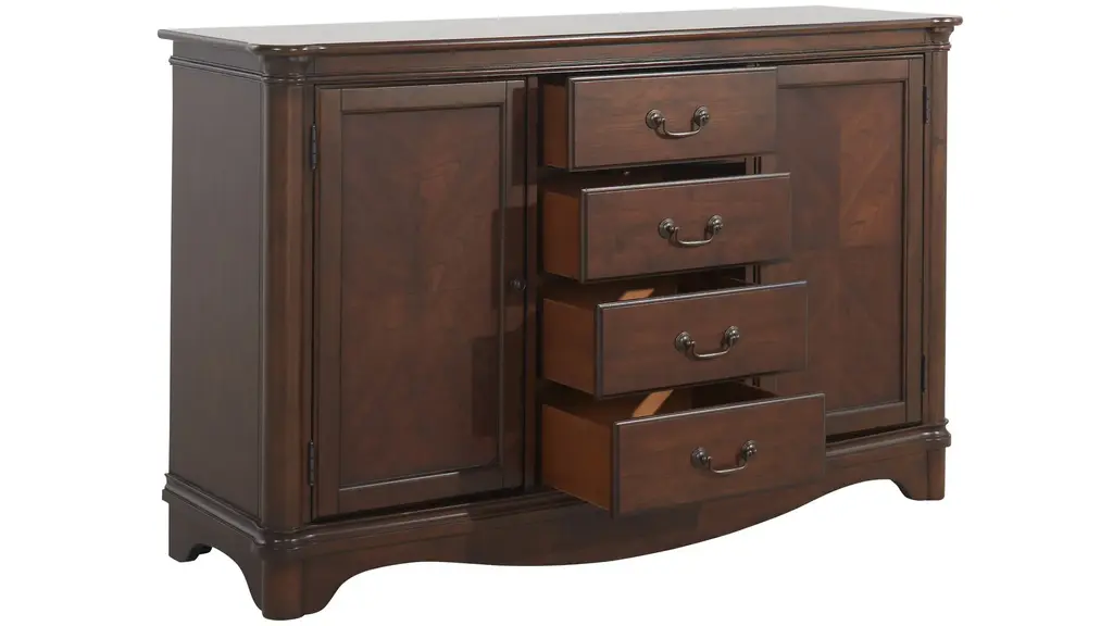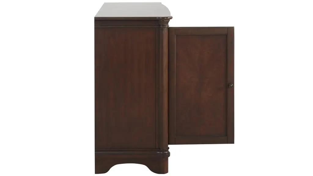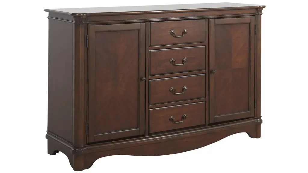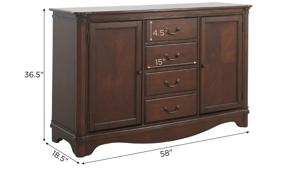 Enhance your formal dining experience with the Winchester buffet. The tempered glass doors allow any host to display their favorite dining essentials, while 4 drawers present the opportunity to store items you prefer to keep hidden away but still accessible. The cherry finish is also a nice touch for any refined dining room.