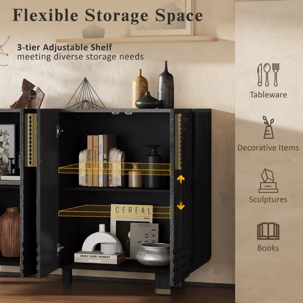 Yoocozz 54" Retro Fluted Buffet Cabinet With 4 Doors & Adjustable Shelves - Black