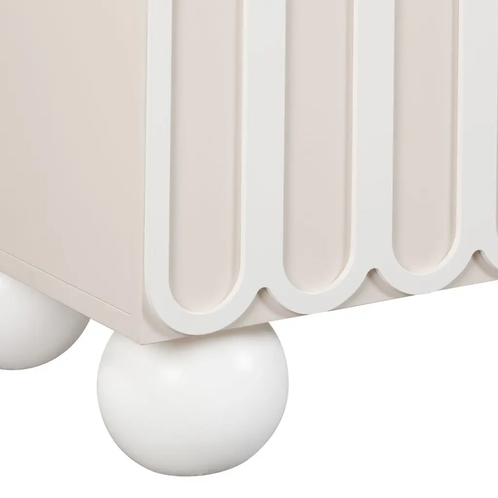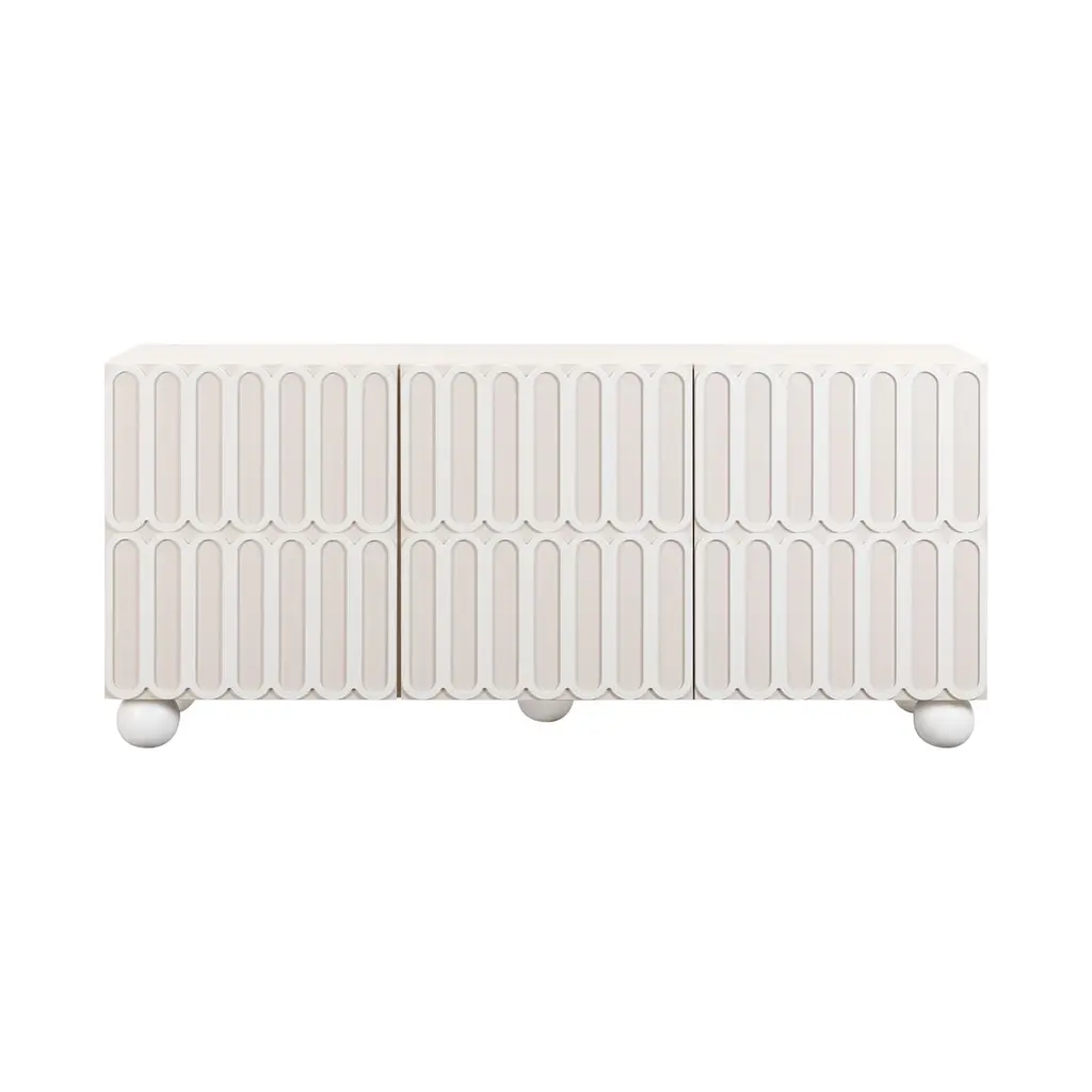 Steal the spotlight with the Zuri Motif Buffet, where a dynamic facade plays the lead role without overshadowing its practical brilliance. Behind the scenes, four discreet drawers offer a storage ensemble fit for the most discerning collector, all perched upon solid wood, spherical legs that bring a sculptural, Hollywood-esque flair. This buffet dazzles with a medium sheen that makes cleanup a breeze, paired with soft-close hinges that salute quality, and adjustable shelves that flex to fit your function with a dash of finesse.