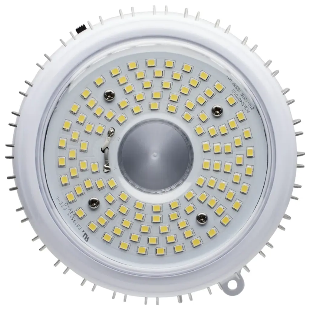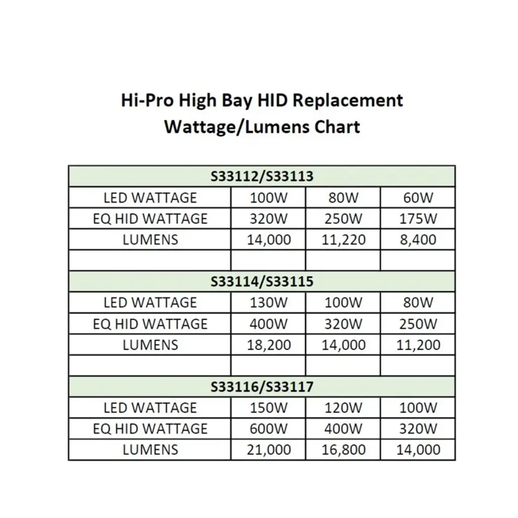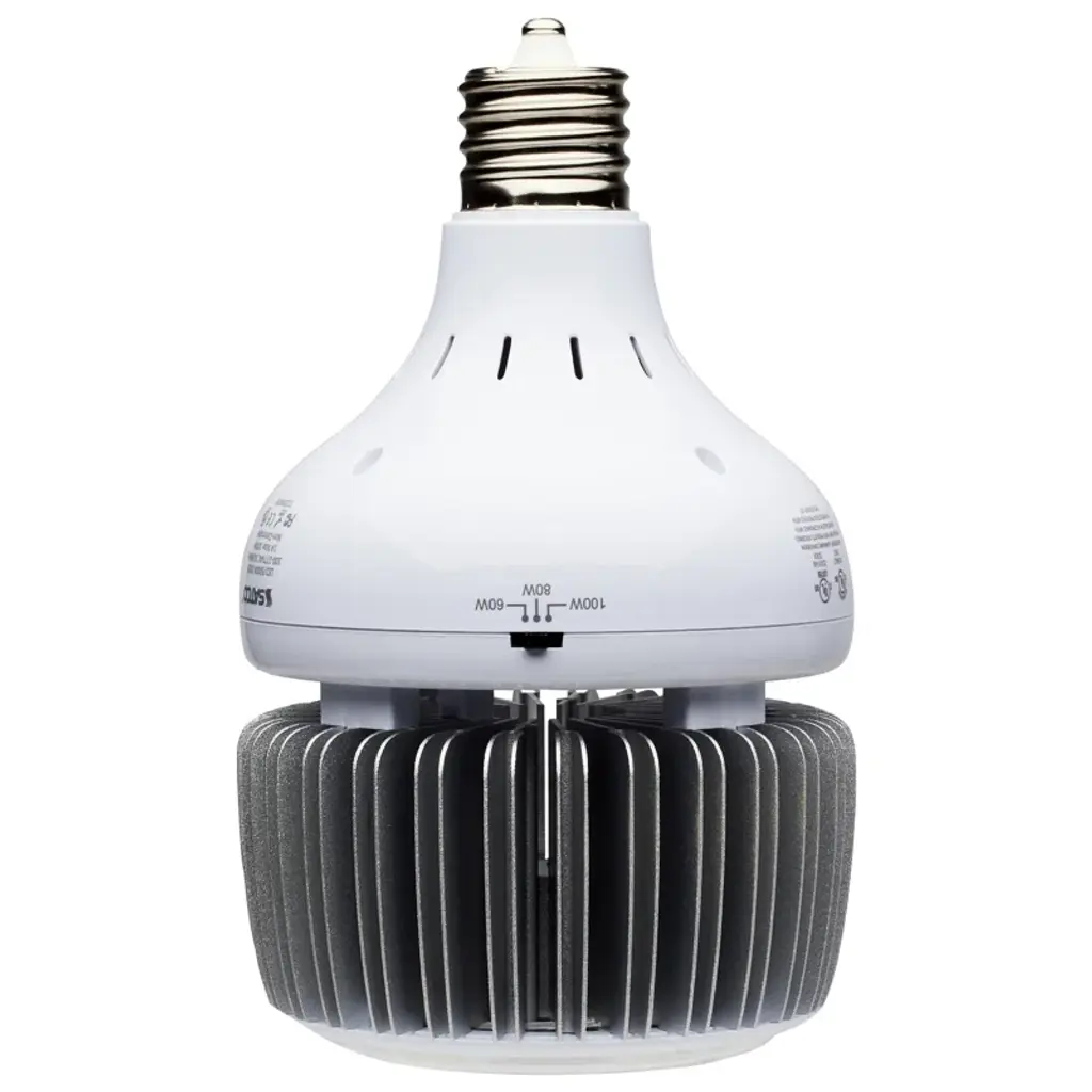 Satco's new high bay/low bay offers improved performance on every level and is now power selectable to cover a wider range of applications. Replaces 175 to 600-watt HID technologies using 60 to 150-watt efficient, superior LED light. The redesigned compact shape expands fixture compatibility options, and the advanced heat dissipation design featuring convection cooling means a cooler running, longer-lasting lamp. Commercial venues everywhere have been relying on these fixtures for years such as warehouses, gymnasiums, health clubs, factories, and arenas - everywhere superior light output is critical, and reducing maintenance is important.