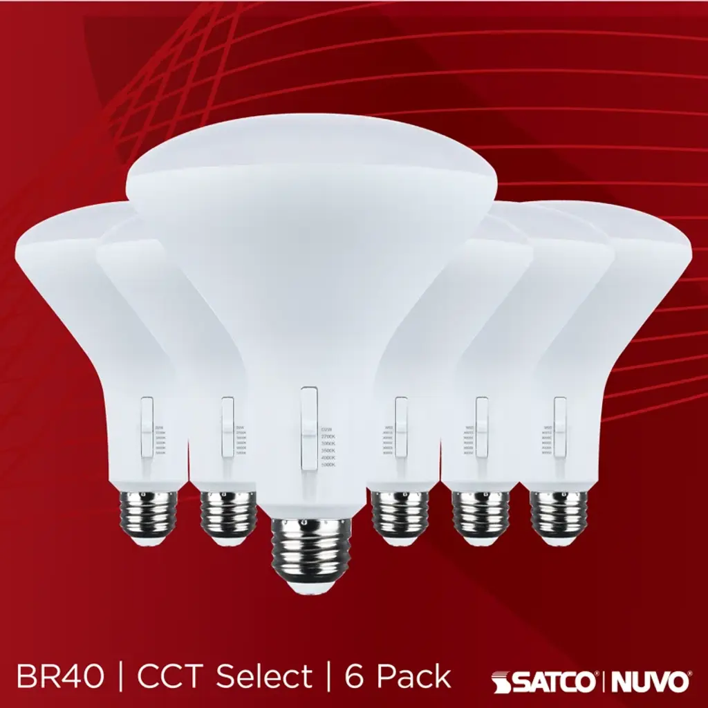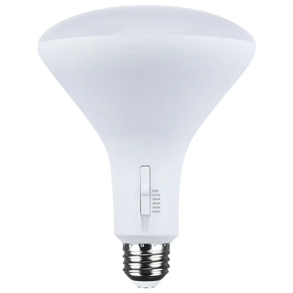 Transform your lighting experience with SATCO NUVO's LED reflector light bulb. Designed for superior energy efficiency, this bulb provides vibrant, true-to-life white light with an impressive CRI of 90. The classic BR40 shape, allows this lamp to fit seamlessly into a variety of fixtures to suit many different needs. Offering a 5 CCT range from a soft 2700K to a crisp 5000K, and a dim-to-warm capability feature from 3000K to 2000K, this lamp allows you to enjoy the nostalgic charm of traditional incandescent lighting with modern efficiency. With a wide 120 degrees beam angle, this bulb is versatile enough to suit any environment, from living rooms and dining areas to offices, museums, and retail stores, ensuring the perfect ambiance for every setting.