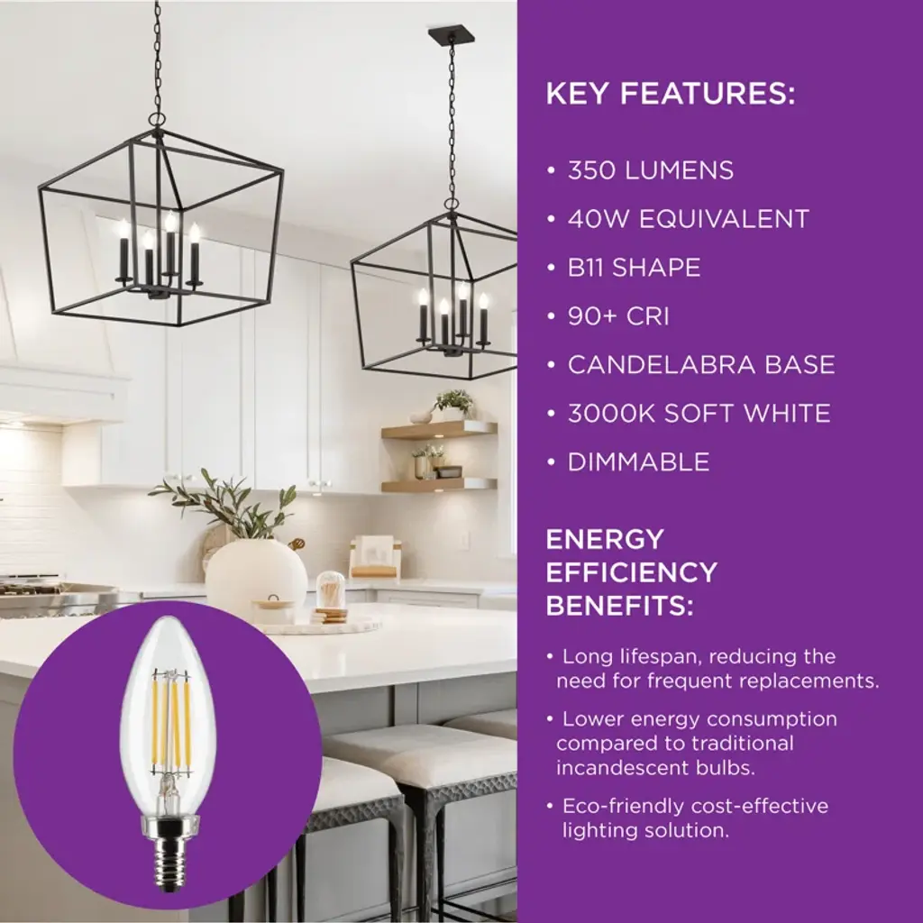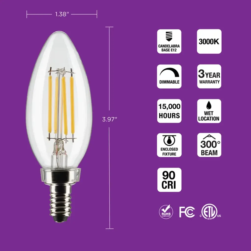 Satco's 4-watt LED lamp is traditional, yet contemporary with its vintage style and energy-saving LED technology. Elegantly illuminate any room in the house with this dimmable clear bulb. Sophisticated and modern, this lamp delivers 15,000 hours. Available in 5 Color Temperature Options.