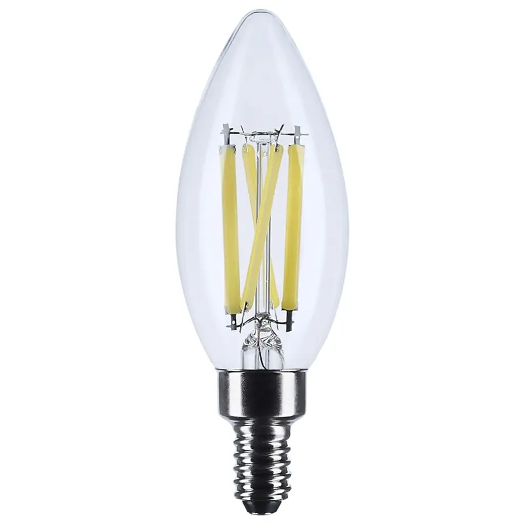 Satco's 8-watt LED bulb is an elegant lighting solution for the home. Perfect for chandeliers, use this dimmable lamp to illuminate living rooms, dining rooms, or anywhere else where a traditional look will complement decorative needs. The bulb has a beam spread of 300 degrees, and delivers 15,000 hours of warm white light.