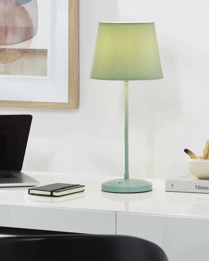 This custom hand-painted Little Aviator resin lamp with shade and light bulb is a great way to add a soft glow to your child’s room. A stylized airplane in sky blue, navy and white is ready for take off from a white star-shaped base. The coordinating custom lamp shade is a sky blue color with clouds and stars. The total height of the lamp with shade is approximately 14”. This lamp comes complete with an energy efficient LED light bulb.
