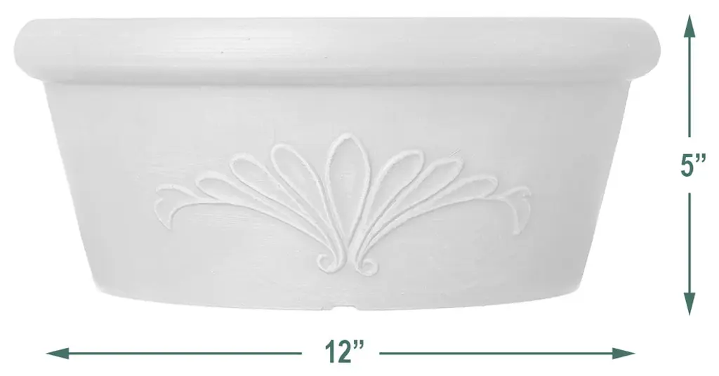 The Bulb Pan is an elegant, ecofriendly way to showcase your favorite flowers and plants. Made from a mix of recycled polymer, stone powder, and wood dust, this charcoal gray planter is lightweight, weather-resistant, and durable. Its classic shape and carved leaf design give it a traditional feel.