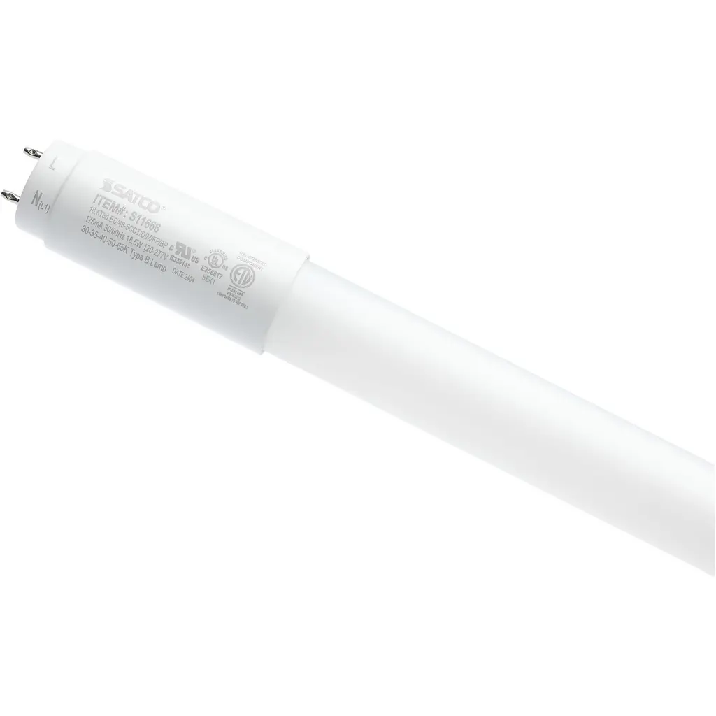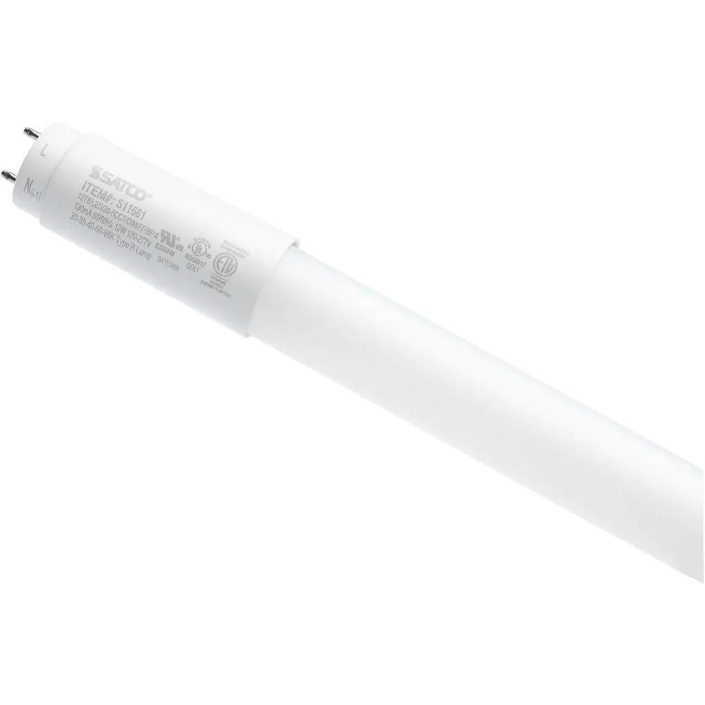 11.5 Watt T8 LED - 48 Inch - 30K/35K/40K/50K/65K CCT Selectable - Medium Bi Pin Base - Type B Ballast Bypass - 120-277 Volt - Frost Finish