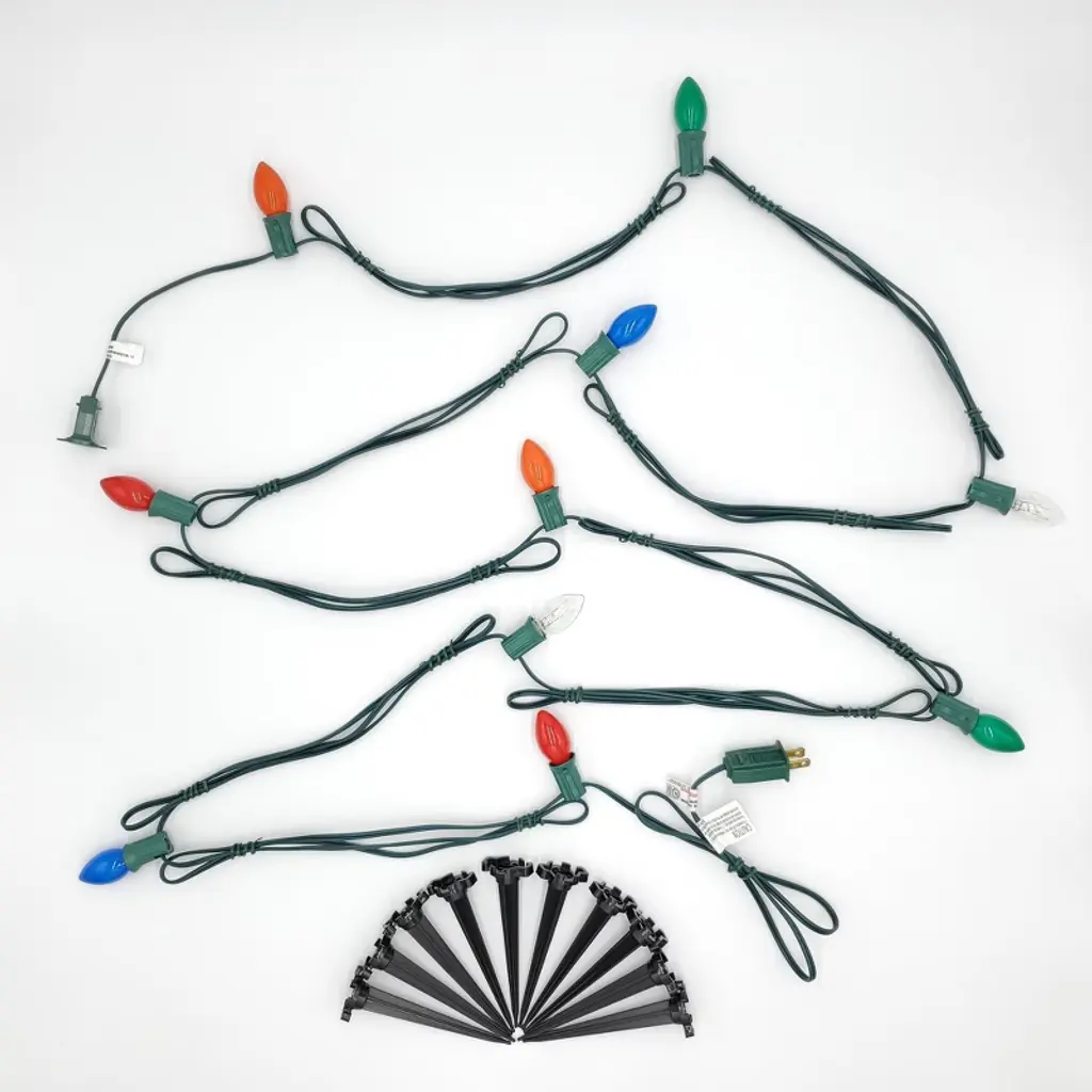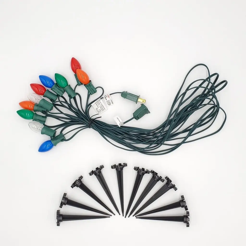 Electric pathway lights will bring a magnificent ambiance to your outdoor décor. These weather-resistant string lights can be enjoyed throughout the entire season. Simply stretch the 360" electric cord and position each of the C7- 5 watt light bulbs in each anchor stake. The illuminating glow adds perfect accent lighting to driveways, walkways, sidewalks, or entryways.