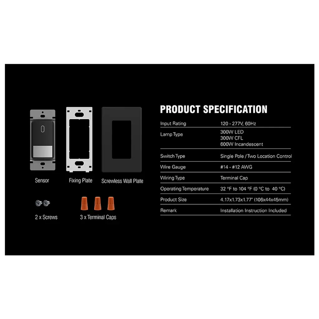 Elegrp Sensor Light Switch, Pir Infrared Motion Activated Wall Switch No Neutral Wire, Single Pole For Cfl/led/incandescent Bulb, Ul Listed,black 2Pc
