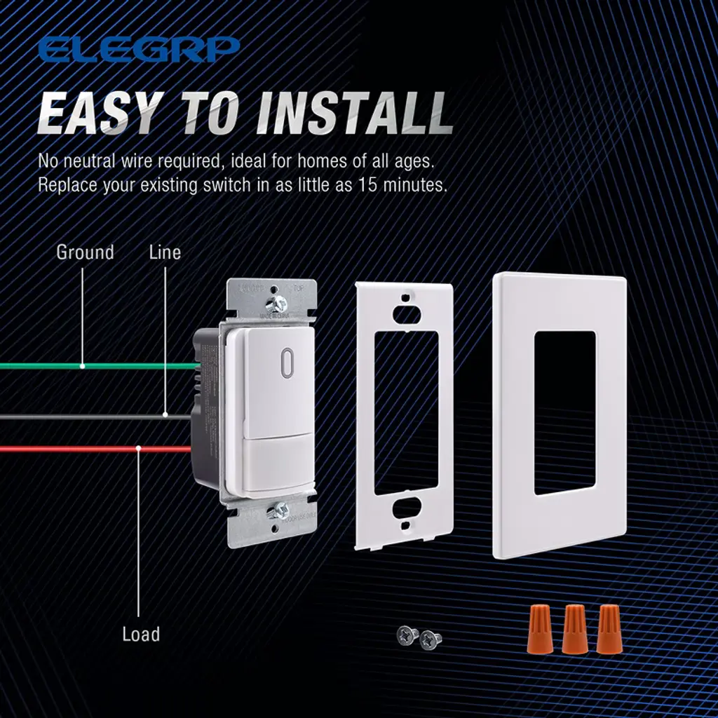 Elegrp Sensor Light Switch, Pir Infrared Motion Activated Wall Switch No Neutral Wire, Single Pole For Cfl/led/incandescent Bulb, Ul Listed,white 2Pc