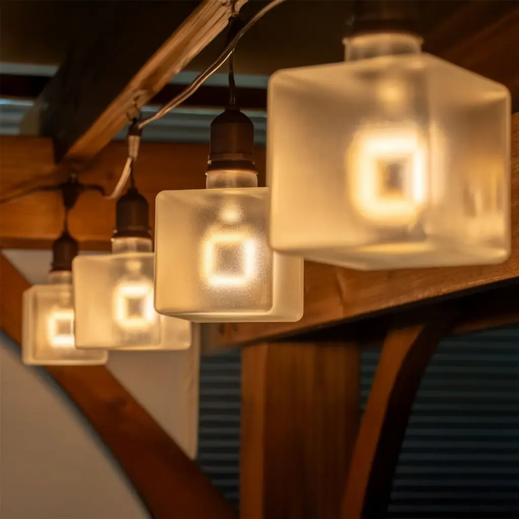 Festive Living Led Cube Light, Unique Edison Bulb With Square Filament, Large Pendant Bulb, E26 Base, 5W 2700k Warm White, Frosted Coated Glass