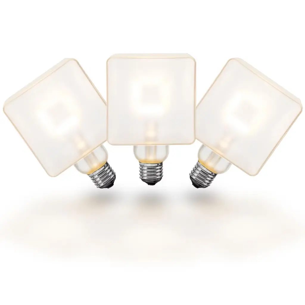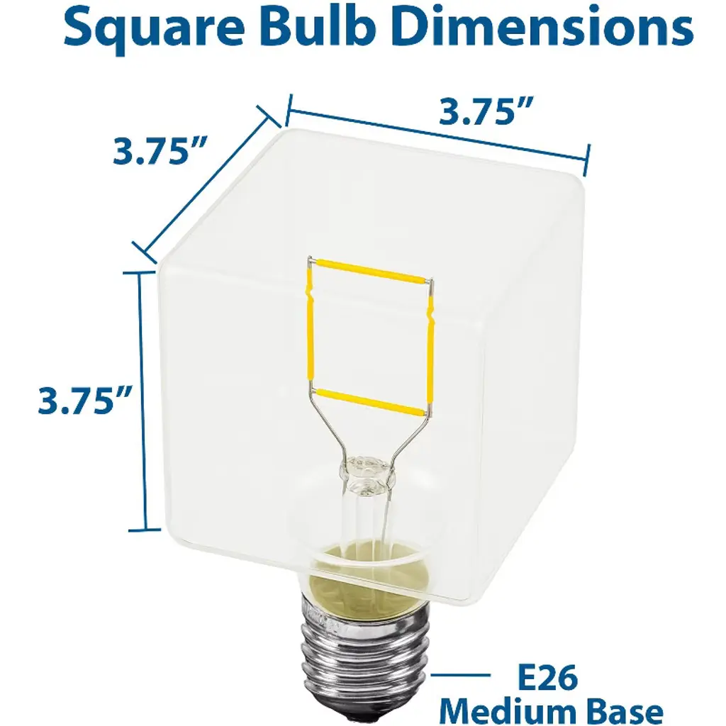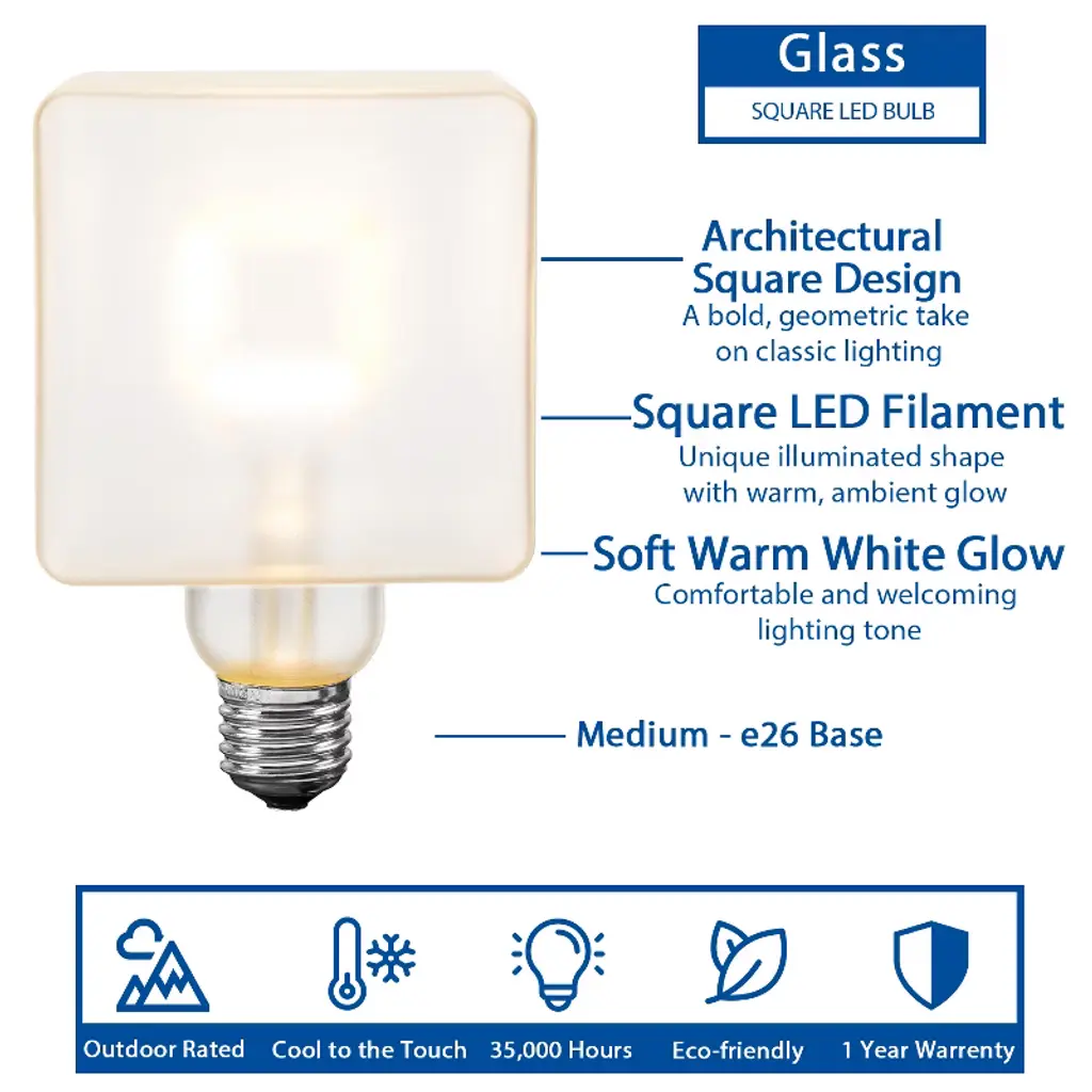 Add a bold twist to classic lighting with our Square Glass LED Bulb, featuring a striking square-shaped filament encased in a coated glass square housing. Designed to be both eye-catching and energy-efficient, this bulb blends modern aesthetics with everyday functionality. Whether you're illuminating a contemporary loft, elevating your workspace, or styling a statement fixture, the geometric design delivers a clean, architectural vibe that stands out. The medium E26 base ensures easy compatibility with standard sockets, while the long-lasting LED technology offers low energy consumption and minimal heat output.