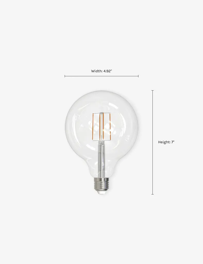 Good design falls flat under bad light, so finding the proper bulbs and opting for quality is essential to elevating your decor. LED filaments offer the classic look and full light of an incandescent bulb with the energy efficiency of LED technologyready for dimmable fixtures and wet-rated for indoor or outdoor installation. This large globe bulb provides a warm, white light for balanced illumination.