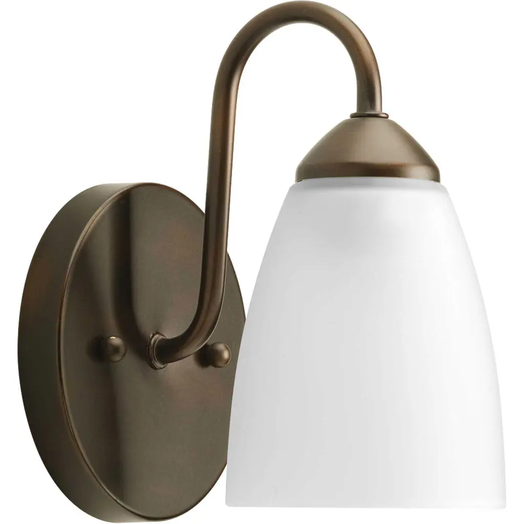 Gather possesses a smart simplicity to complement today's home. This one-light bath bracket contains an etched glass shade which adds distinction and provide pleasing illumination to your room. Featuring a glamorous Brushed Nickel finished frame, this collection allows you to decorate an entire home with confidence and style.