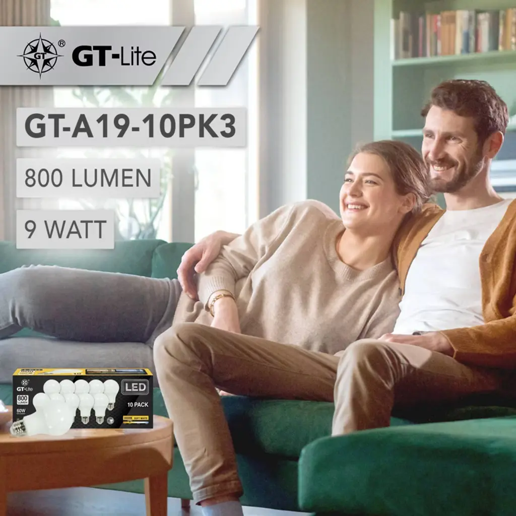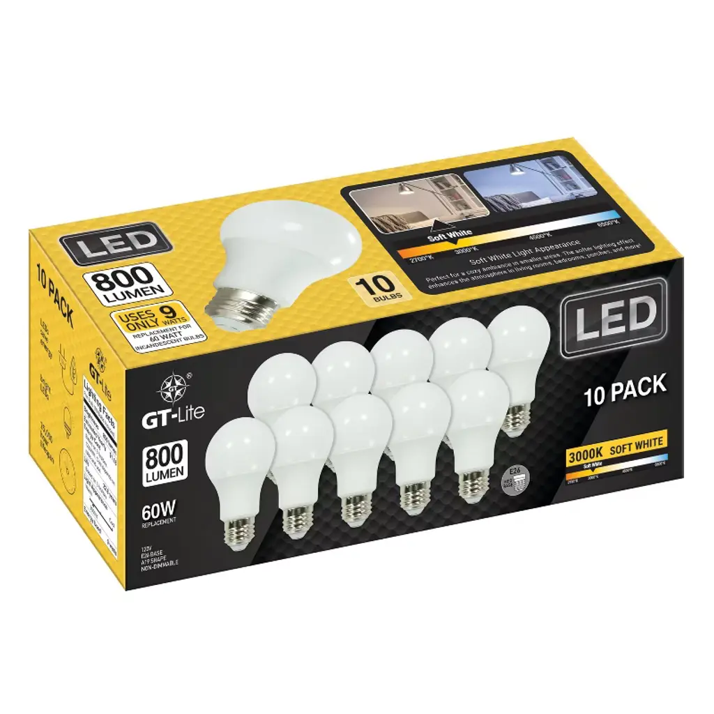 Gt-lite 10pk 800 Lumen 3000k 60w Led A19 Bulb Equivalent E26