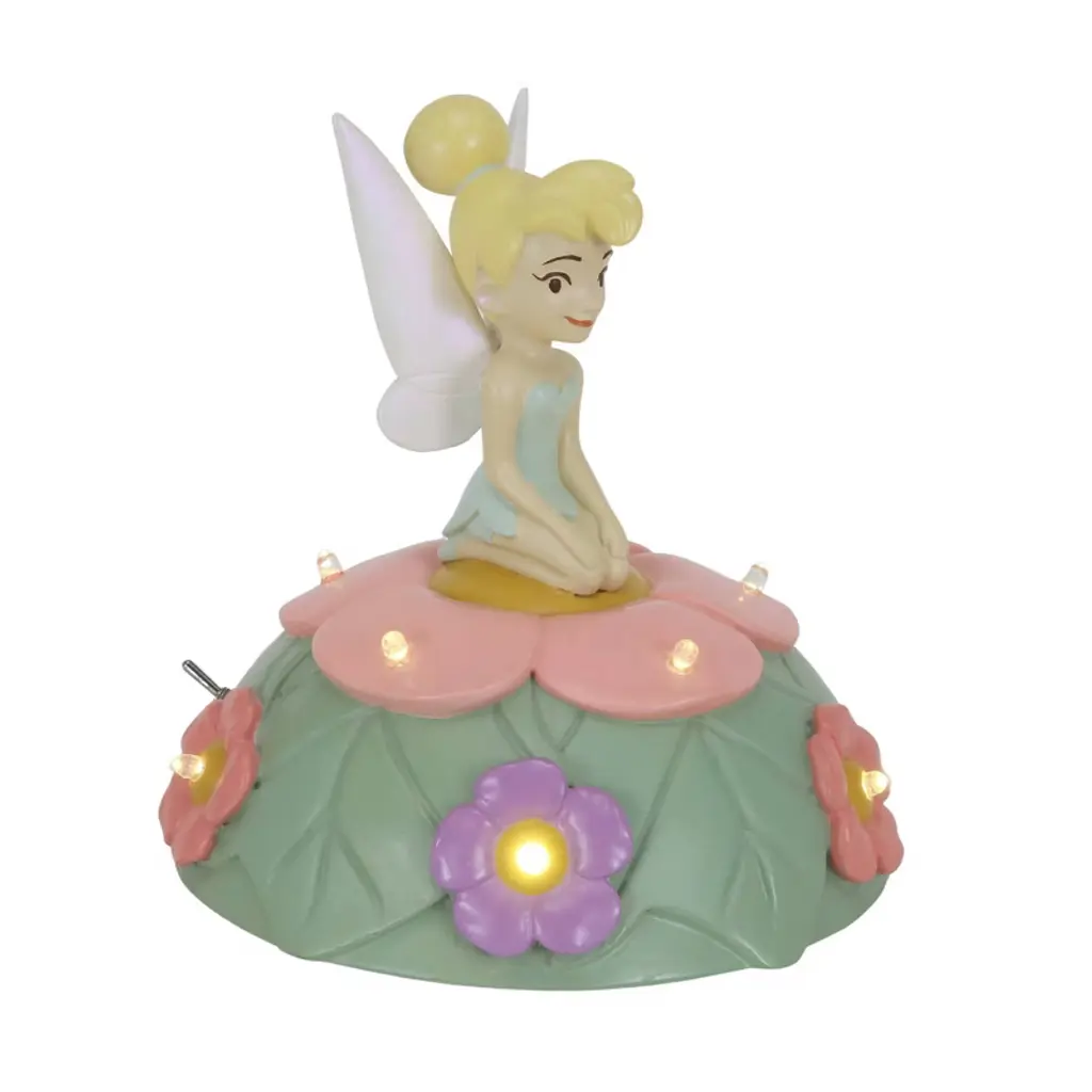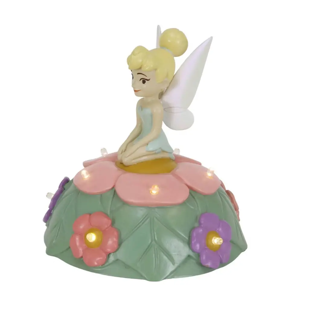 This enchanting 3-D hand painted Tinker Bell table top light features Tinker Bell sitting on pretty pink petals and green leaves. There are ten LED lights which creates a calming ambiance. This amazing table top light is portable and is approximately 6.5 inches tall with a 6 inch diameter base. Easy to use on/off switch is located on the back. It will add the finishing touch to create a magical room for your little one. Requires only 2 AAA batteries, not included.