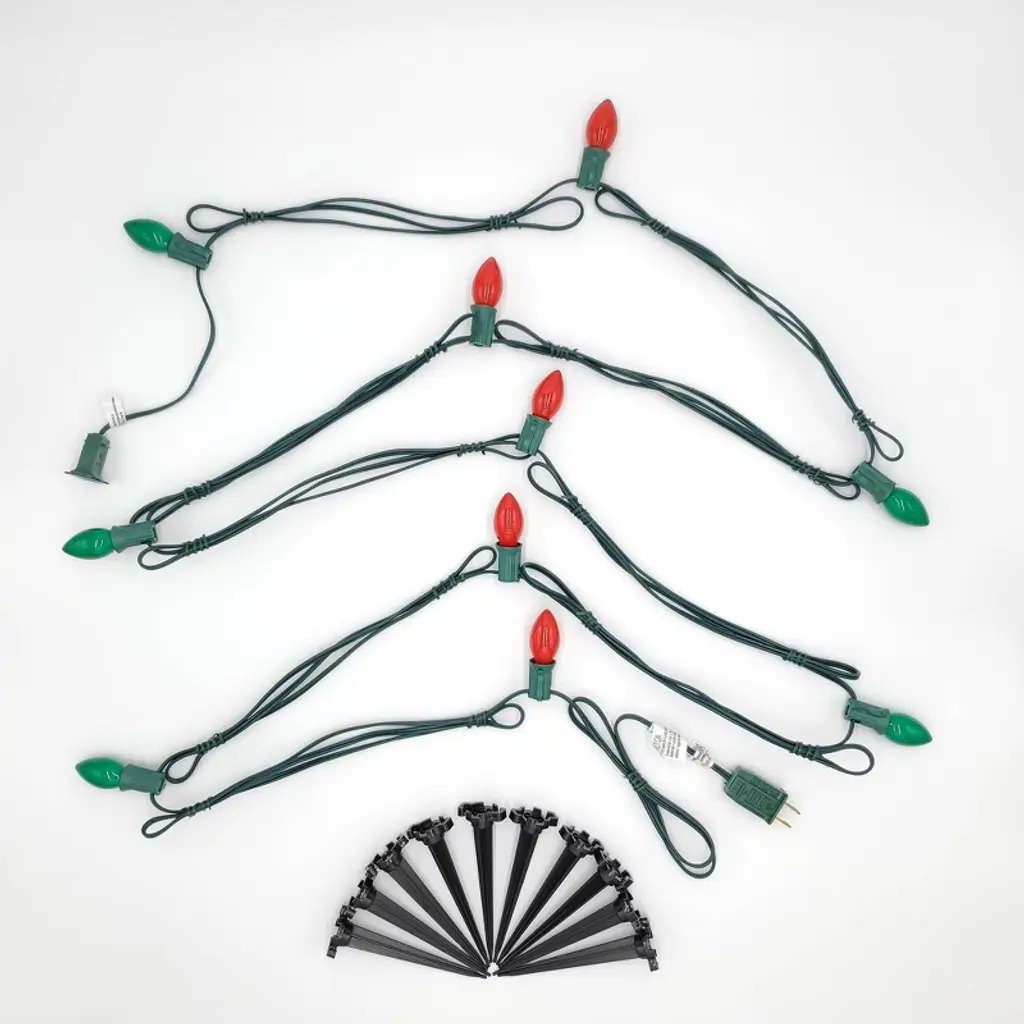 Electric pathway lights from LumaBase will bring a magnificent ambiance to your outdoor décor. These weather-resistant string lights can be enjoyed throughout the entire season. Simply stretch the 360" electric cord and position each of the C7 LED light bulbs in each anchor stake. The illuminating glow adds perfect accent lighting to driveways, walkways, sidewalks, or entryways.