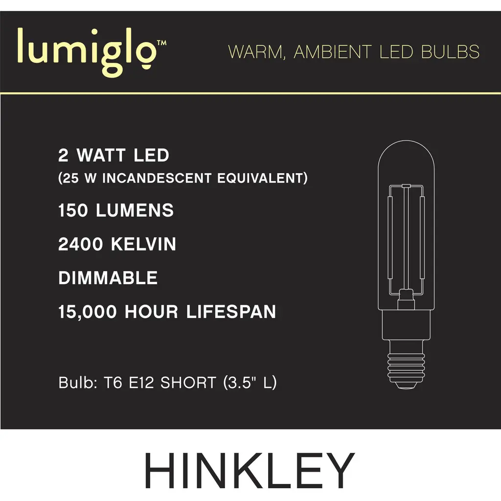 To create superior, softer light that sets the scene in any indoor or outdoor setting, Hinkley’s Lumiglo™ LED bulbs feature unique filament technology designed to cast a warm ambient glow. Dimmable functionality provides full control over brightness, allowing you to craft an atmosphere that perfectly accentuates your space.