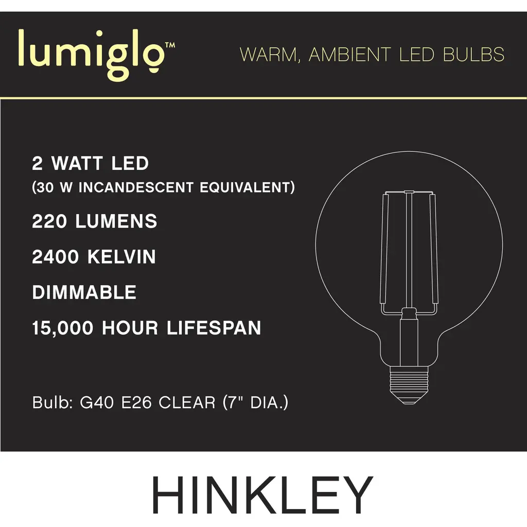 To create superior, softer light that sets the scene in any indoor or outdoor setting, Hinkley’s Lumiglo™ LED bulbs feature unique filament technology designed to cast a warm ambient glow. Dimmable functionality provides full control over brightness, allowing you to craft an atmosphere that perfectly accentuates your space.