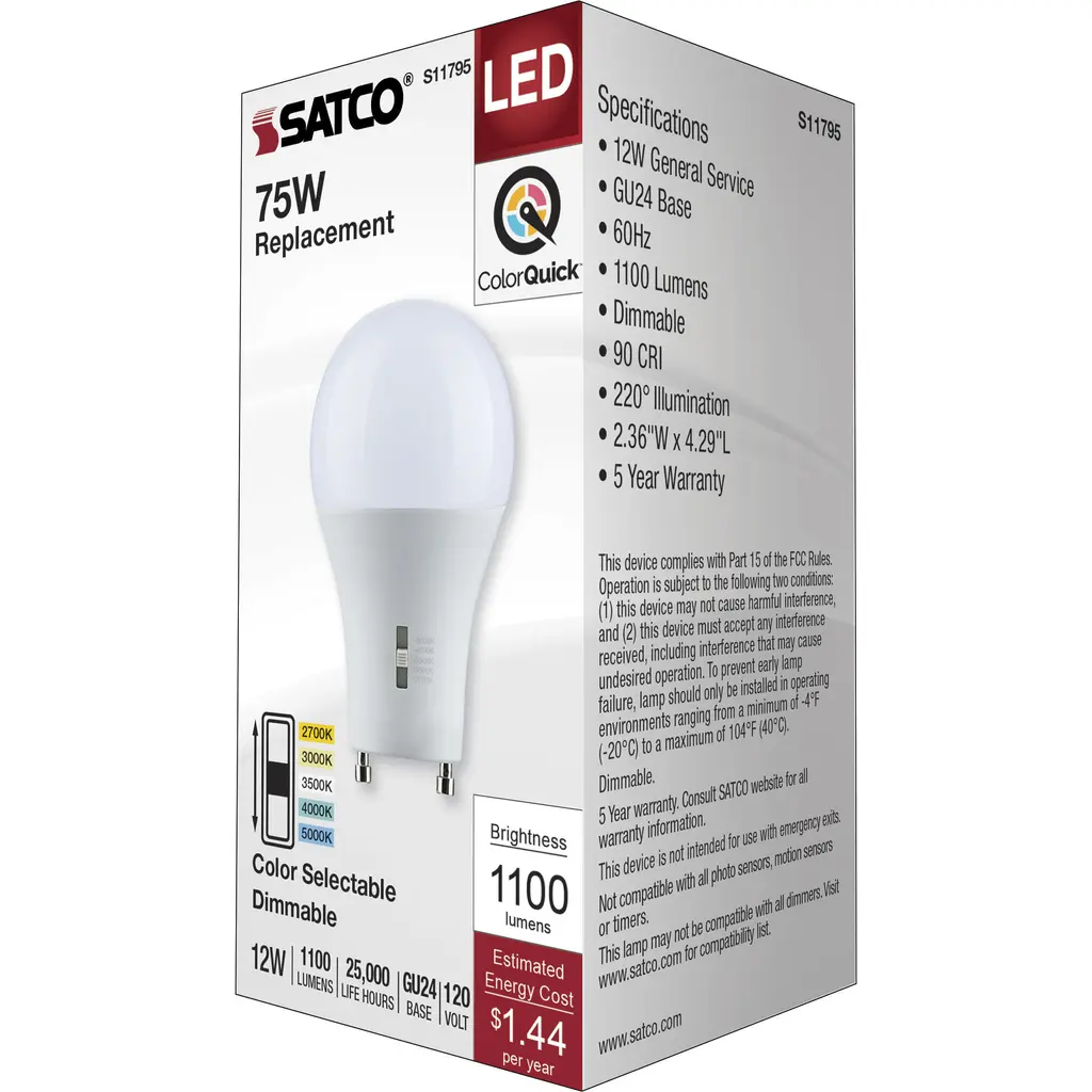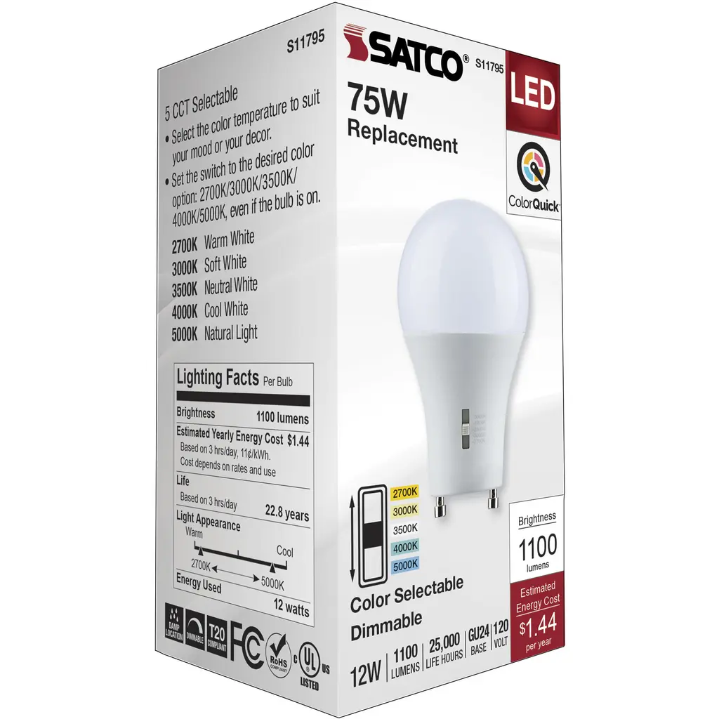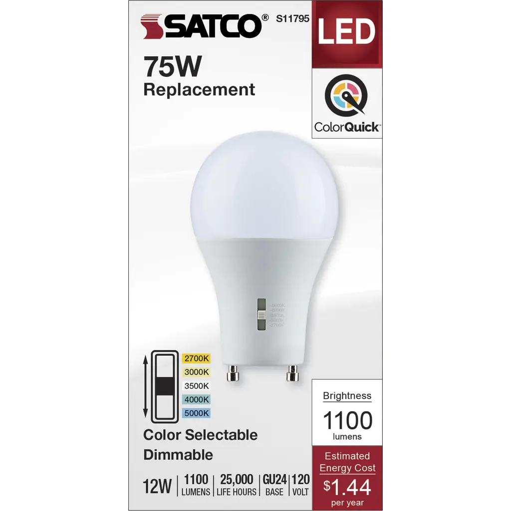 12 Watt A19 LED - Bi Pin GU24 Base - CCT Selectable - 120 Volt - White Finish