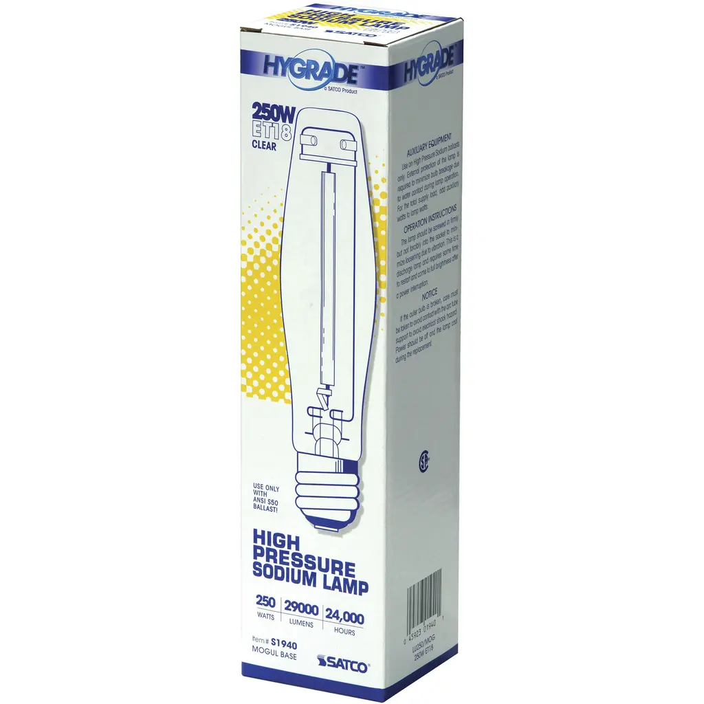 250 watt; High Pressure Sodium HID; Mogul base; ET18; Clear; 22 CRI; 2100K