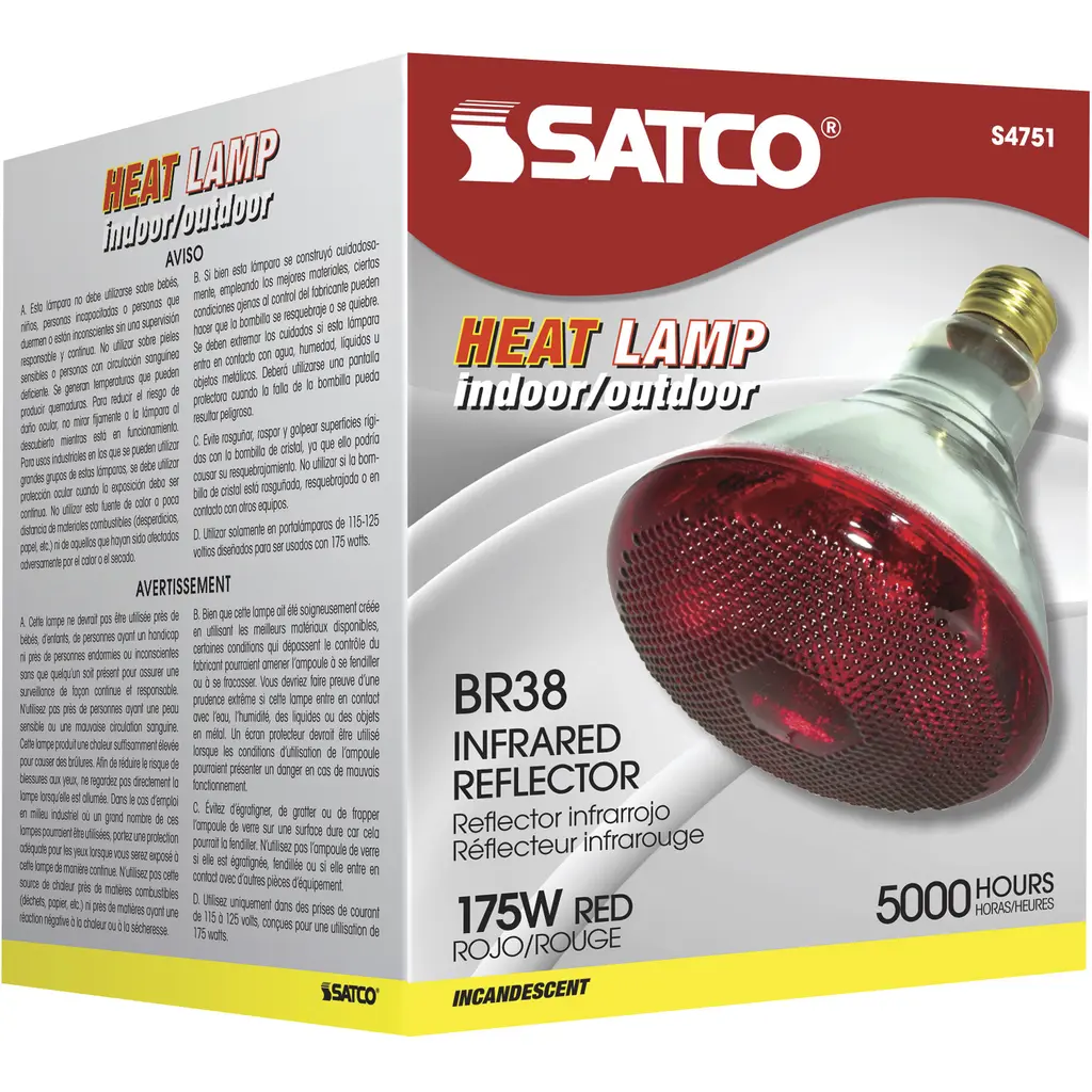 175 watt BR38 Incandescent; Red Heat; 5000 Average rated hours; Medium base; 120 volts