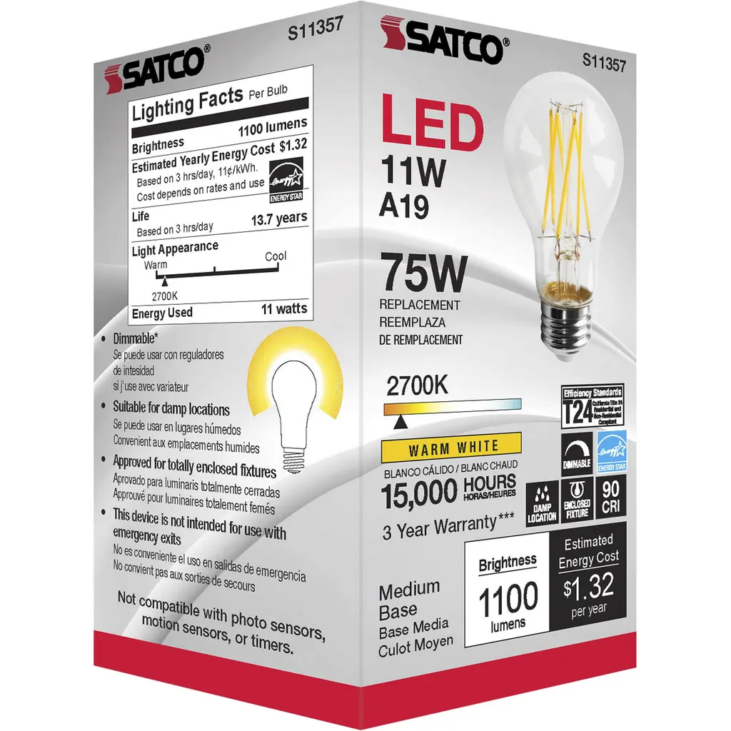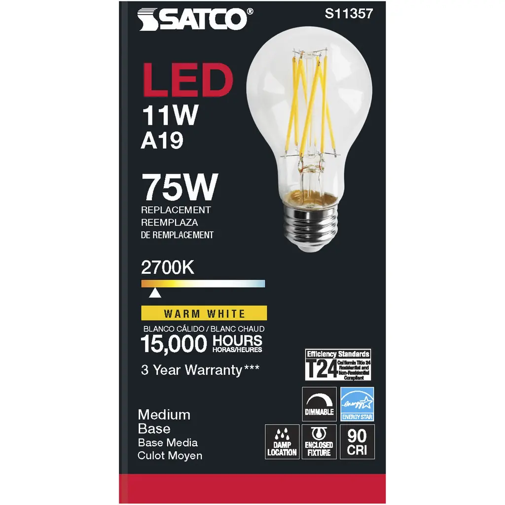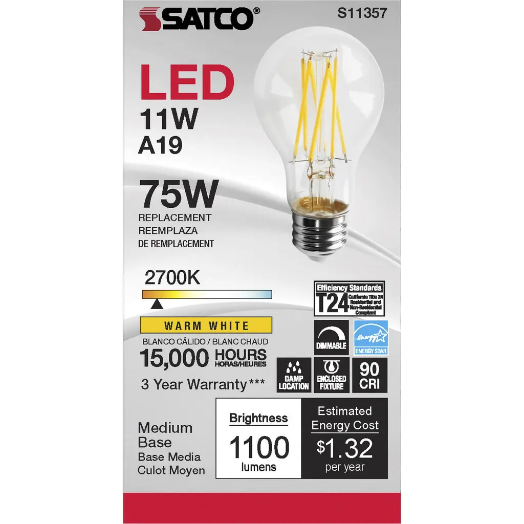 11 Watt A19 LED Lamp - Clear 2700K Medium Base 120 Volts